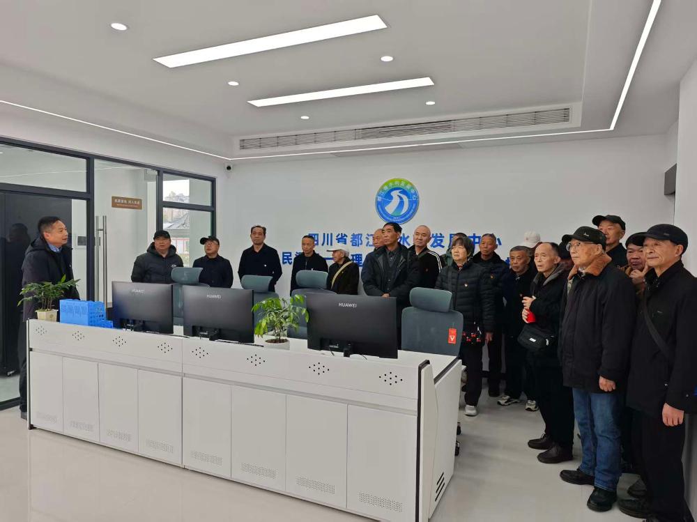在新繁站远程控制室,科技兴水的生动实践让离退休党员倍感振奋。工作人员操作演示了数字系统的实时监测、精准调水功能——屏幕上,各取水枢纽的运行状态、重要点位视频一目了然,点击鼠标即可完成闸门远程操控。退休党员感慨道“现在坐在办公室就能掌握全域情况,再不怕狂风暴雨出不了门,这就是水利新质生产力!”。在职党员详细介绍了远程控制系统在春灌保供、水利保护、汛期防御中的应用成效,新老党员共同为水利科技发展点赞。