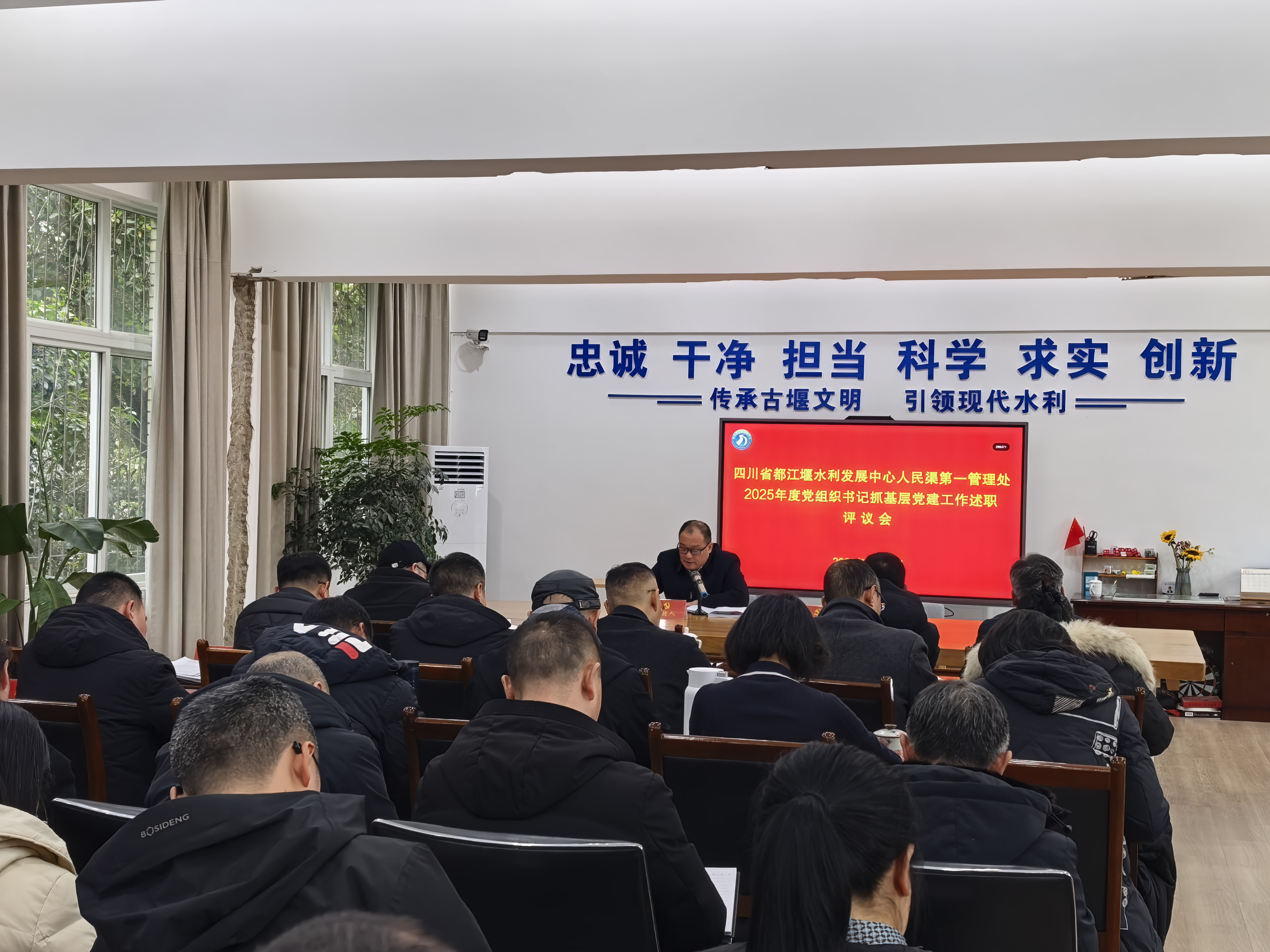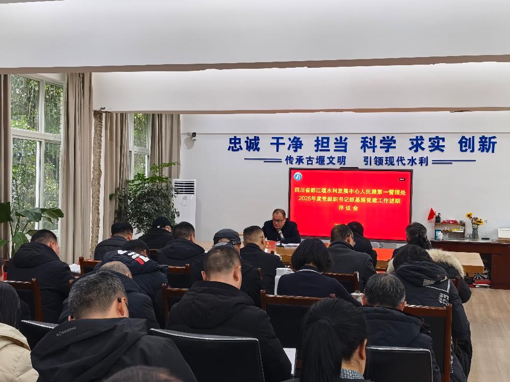 1月22日,人民渠第一管理处召开2025年度党组织书记抓基层党建工作述职评议考核会议,全面考核党支部书记年度履职情况,确保基层党建责任扛稳抓牢、落细落实。党委书记、处长周宗剑主持会议并讲话。