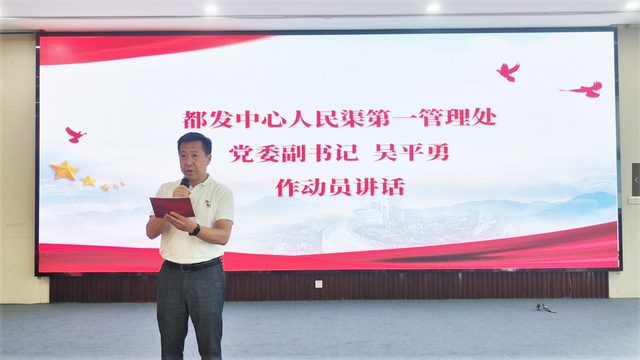 党委副书记吴平勇为“迎大运 保安全”青年志愿服务活动作动员讲话,要求各基层党组织要筑牢坚强战斗堡垒,党员干部要充分发挥先锋模范作用、青年志愿者要全力践行“请党放心、强国有我”的青春誓言,以重在行动、赢在执行、贵在落实奋力做好成都大运会涉水保障志愿服务工作。