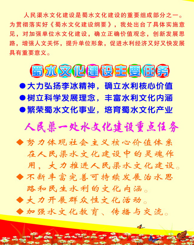 认真贯彻落实蜀水文化建设刚要 大力推进我处水文化建设展板