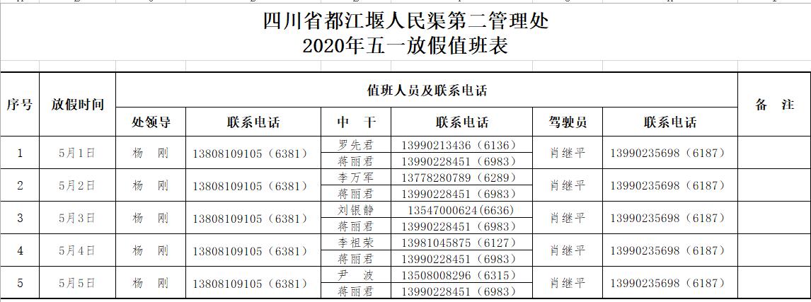二、节日放假前,请各单位切断办公室电源,关好门窗。节日期间,各单位要妥善安排好生产和值班工作,加强公务用车管理,加强稳定信访工作管理,加强灌区防汛值班、电力生产安全、治安消防工作。如有重大突发事件发生,要按规定及时报告并妥善处理,确保大家平安度过假期。