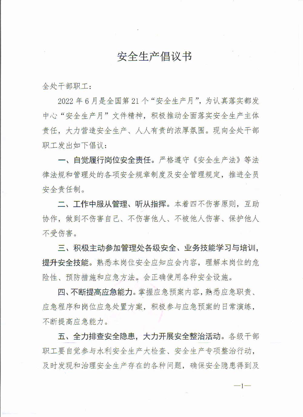 安全生产倡议书