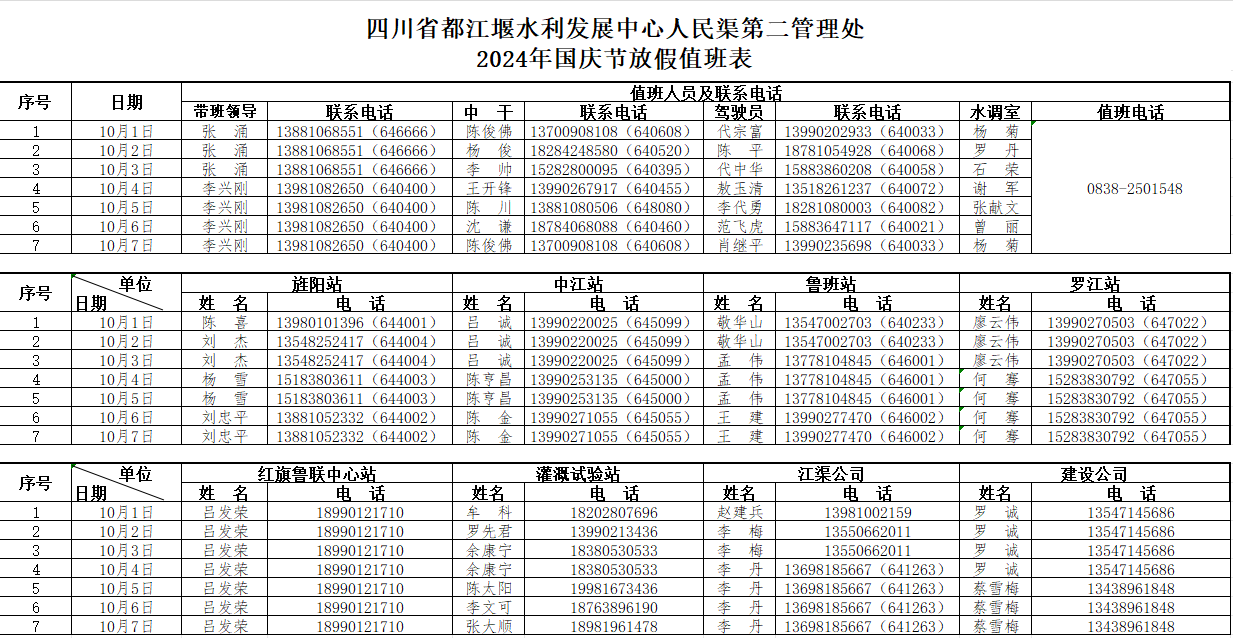 (二)认真执行《四川省都江堰水利发展中心人民渠第二管理处机关值班工作制度》,履行好带班、值班责任,按规范处理带班、值班期间发生的所有工作事项,完成各项工作任务,及时对工作情况进行报告、报备。