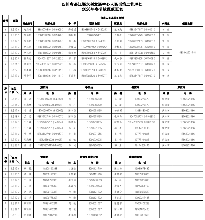 根据《国务院办公厅关于2026年部分节假日安排的通知》(国办发明电〔2025〕7号),结合管理处实际情况,现将2026年春节放假及相关事项通知如下: