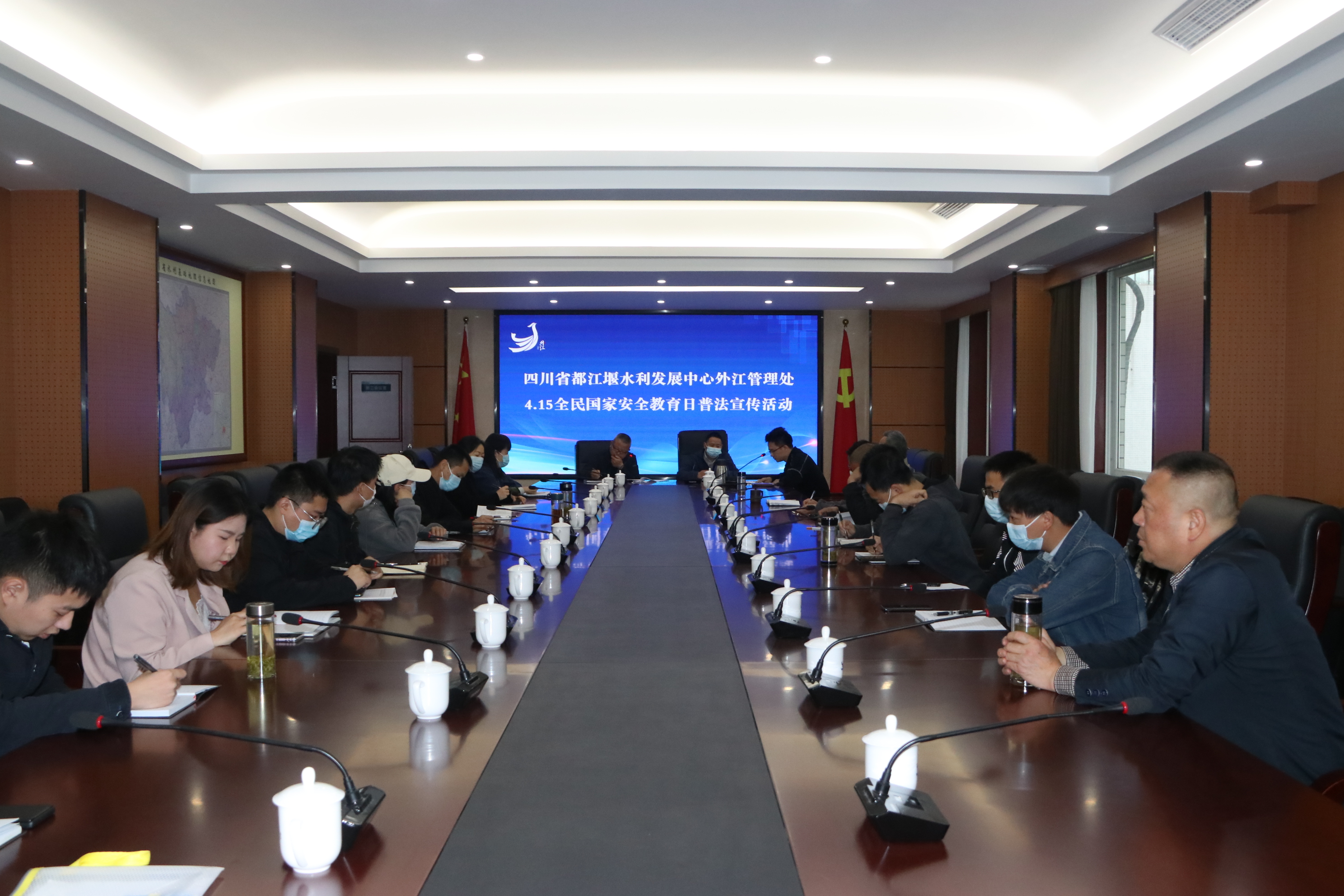为提升我处职工安全意识,提高防控水平,实现国家安全工作常态化,2022年4月15日上午外江管理处组织召开2022年全民国家安全教育日普法宣传活动。受王先允副处长委托,由安监科负责人文钊主持会议。处属各管理站、各电站安全员及处机关各科室相关人员参加会议。