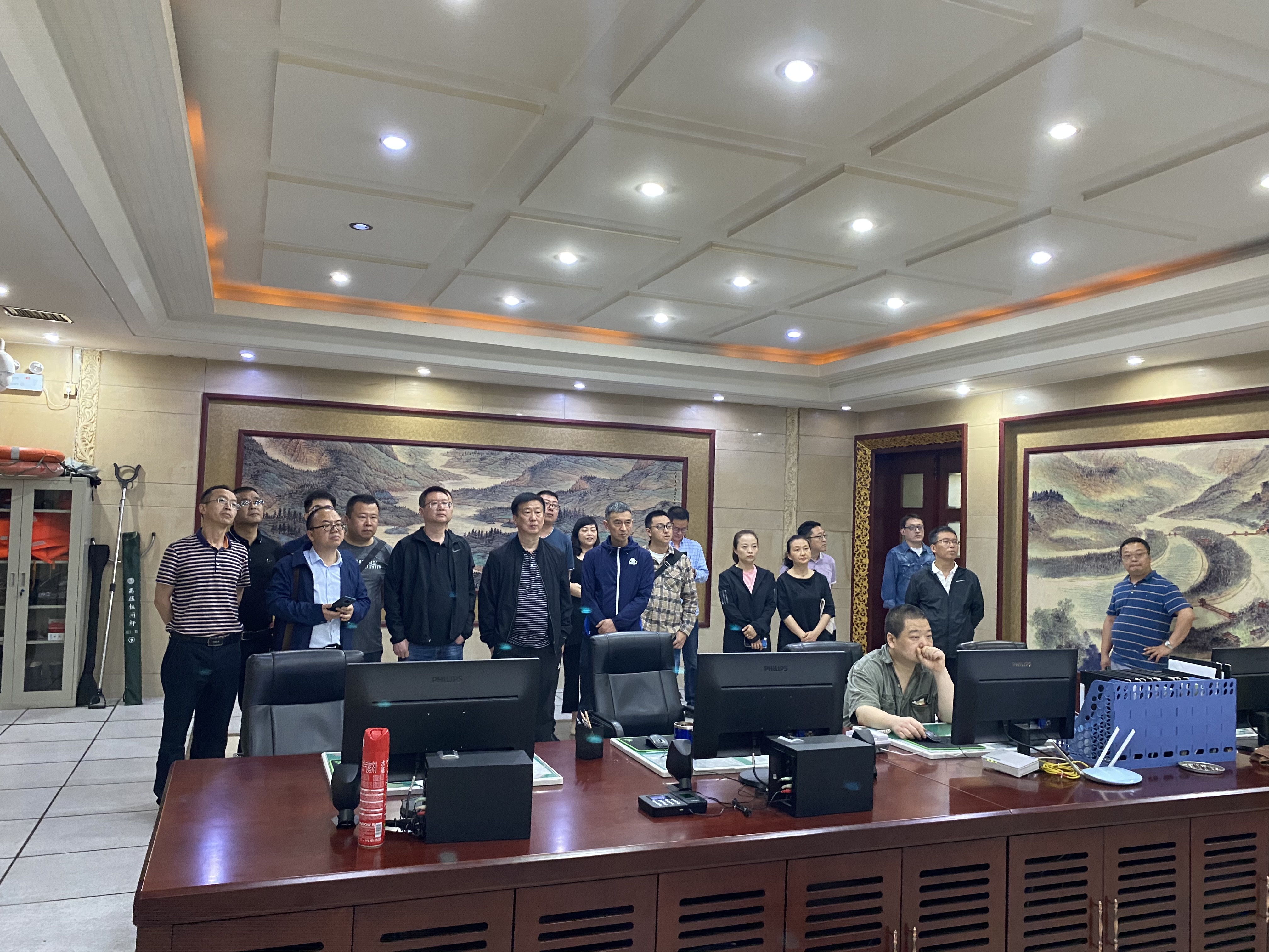 随后,大家一同参观了磨儿滩应急水源工程和紫坪铺水库,磨儿滩应急水源工程在紫坪铺水库下游不远,水源来至紫坪铺的下泄水,是水资源充分利用体现,也是成都市的应急饮用水源保护地,湖水水质清澈,波光粼粼。大家在交流中认为,外江闸群调度中心充分利用现代化管理手段实现闸门远程操控,技术水平和工程管理水平较高,是我们灌区闸群运行管理的建设目标。