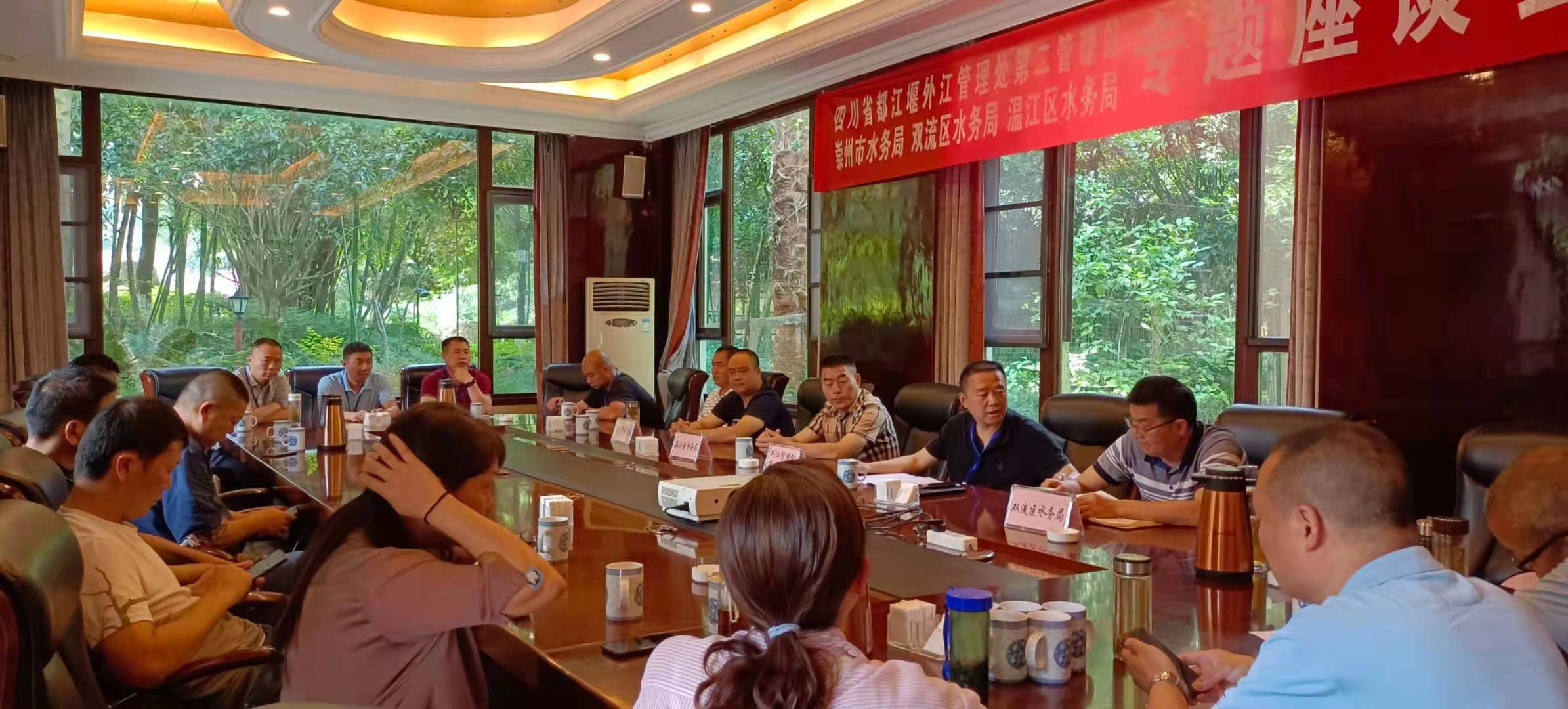 四川省都江堰外江管理处为深入学习贯彻新时期四川水利高质量发展“3226”总体工作思路,聚焦打造“国际知名、国内一流”灌区榜样的目标落实。6月10日,外江管理处第二管理站与崇州市水务局、温江区水务局、双流区水务局开展专题座谈会,邀请所辖灌区内各县(市、区)水务局相关负责人齐聚一堂,围绕助力三年打造灌区榜样这一目标交流思想,诚心纳谏、共谋发展。会议由第二管理站站长付超伟主持。