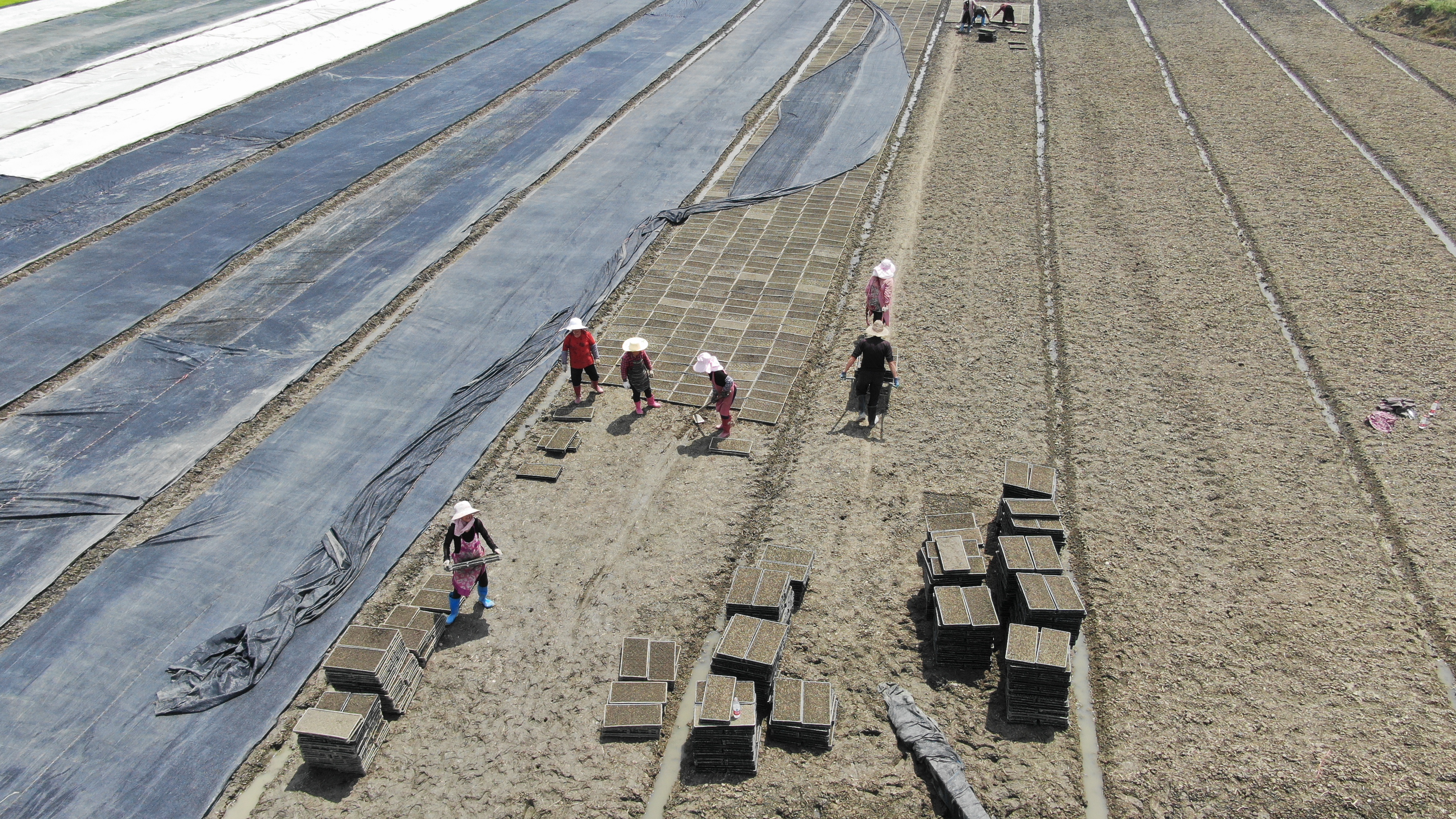 4月中旬,20余名戴着遮阳帽的工作人员正在翻土、灌田、育秧,有些农田已经铺设了薄膜,还有些田地上能明显看到蔬菜的秧苗,地头一旁技术人员正忙着现场示范指导。机器的轰鸣声及村民们的喜悦之声响彻田间,呈现出一片生机勃勃的繁忙景象。