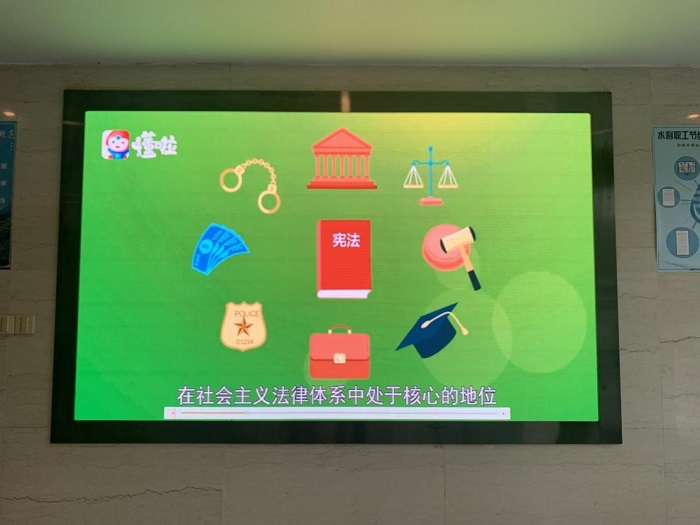 12月4日在外江管理处大屏幕上滚动播放宪法宣传内容,动员全处职工学习宪法及民法典内容。