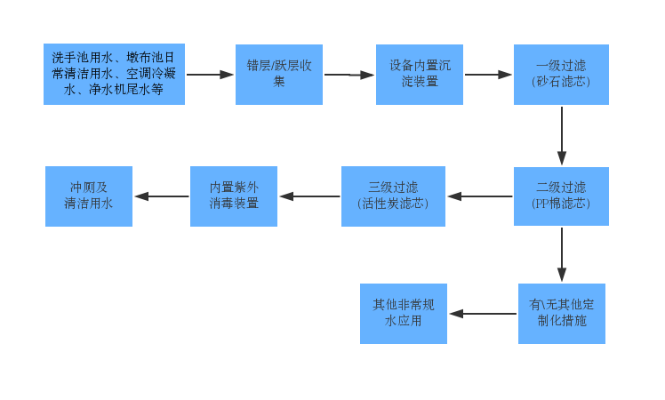 室内非常规水处理回用流程图