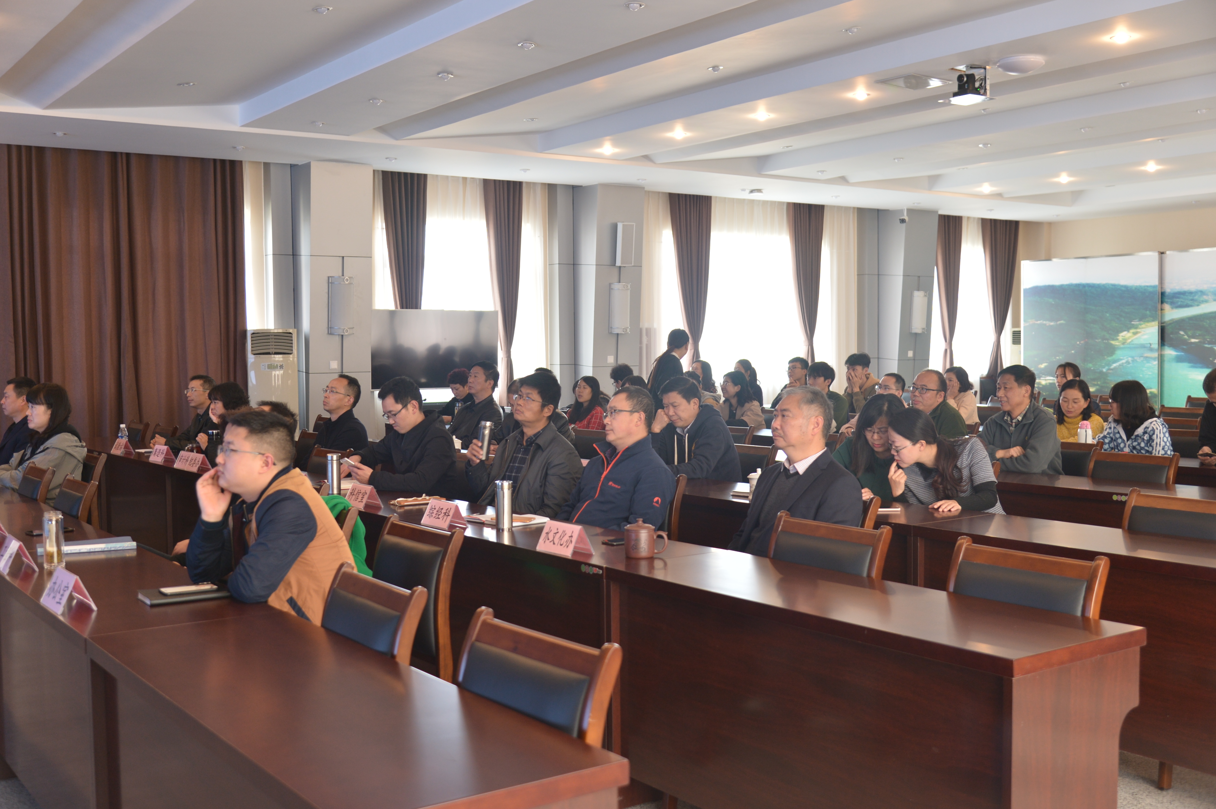 为提升干部职工水文化综合素质,拓宽职工水文化知识面,2019年10月30日下午,外江管理处组织开展了水文化视频学习观影活动。在家处领导、机关全体干部职工在处机关主会场参加了观影活动,处属各站、各处管单位全体干部职工在分会场通过视频会议系统进行观影。