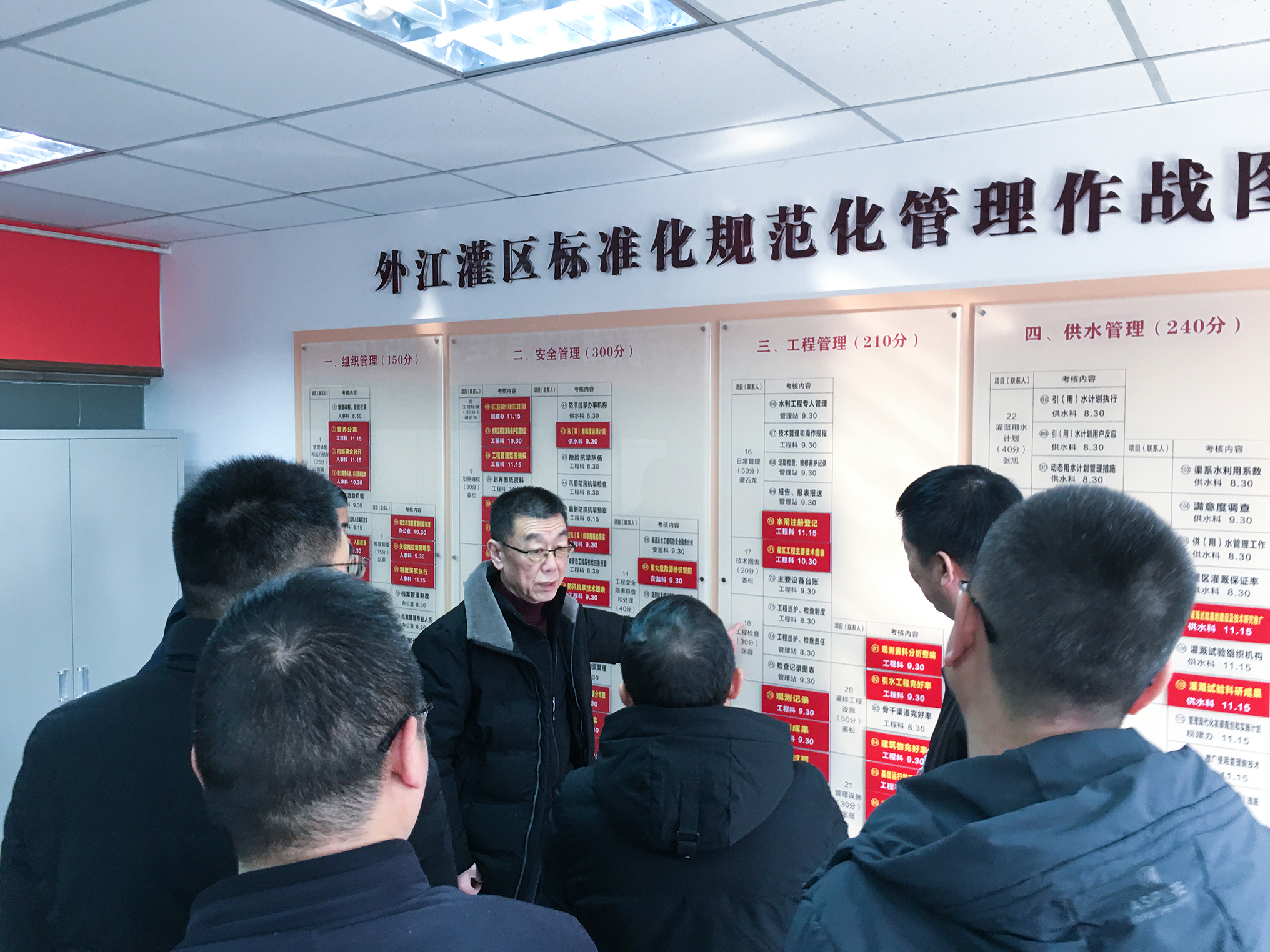 1月14日下午,厅党组成员、副厅长李勇蔺带队到外江灌区调研标准化规范化管理工作。厅规计处、建设处、外江管理处相关负责人陪同调研。