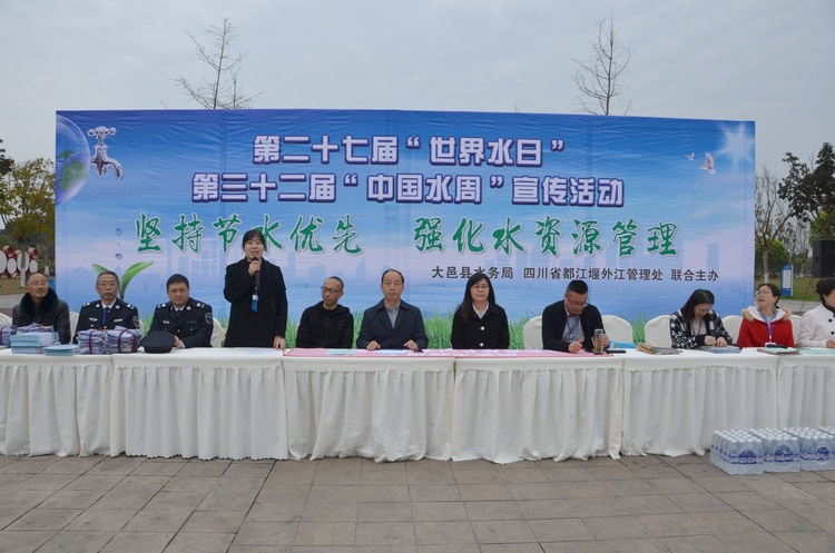 同时,在大邑县法治广场,省外江管理处联合大邑县水务局开展了水法宣传活动,我处工会主席师红萍和大邑县相关领导带领宣传人员向现场群众发放《中华人民共和国水法》《四川省都江堰水利工程管理条例》等宣传资料,向群众宣传 “世界水日”“中国水周”主题和节水知识,引导广大灌区群众从点滴做起,真正做到惜水、节水、护水、爱水,倡导公众养成“节水优先、保护水资源”的良好社会风尚。