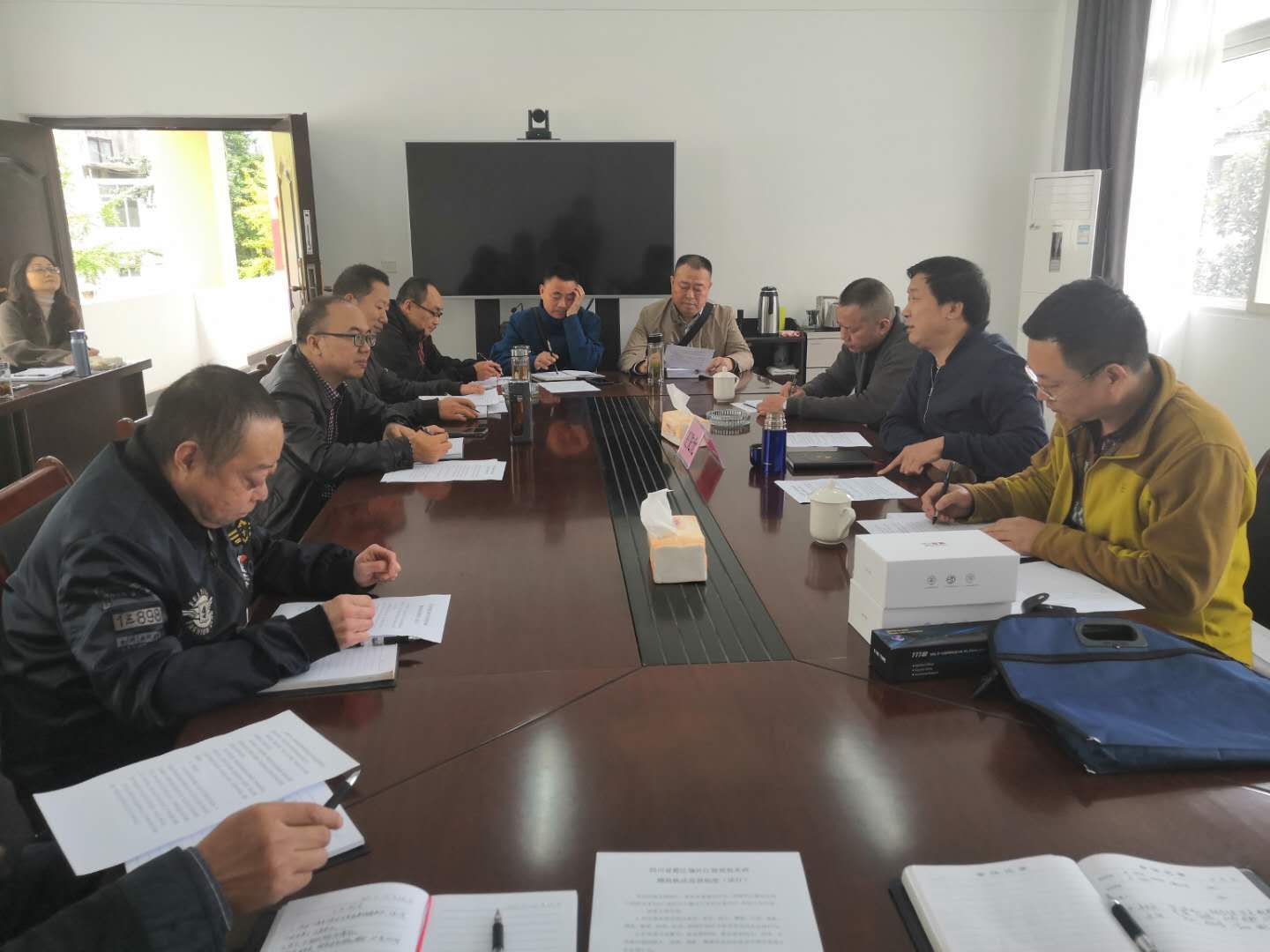 处水政科蔡卫东在会上就《四川省都江堰外江管理处水政辅助执法巡查制度(试行)》征求了与会人员的意见,并讲授了执法记录仪、强光电筒等设备的使用方法。