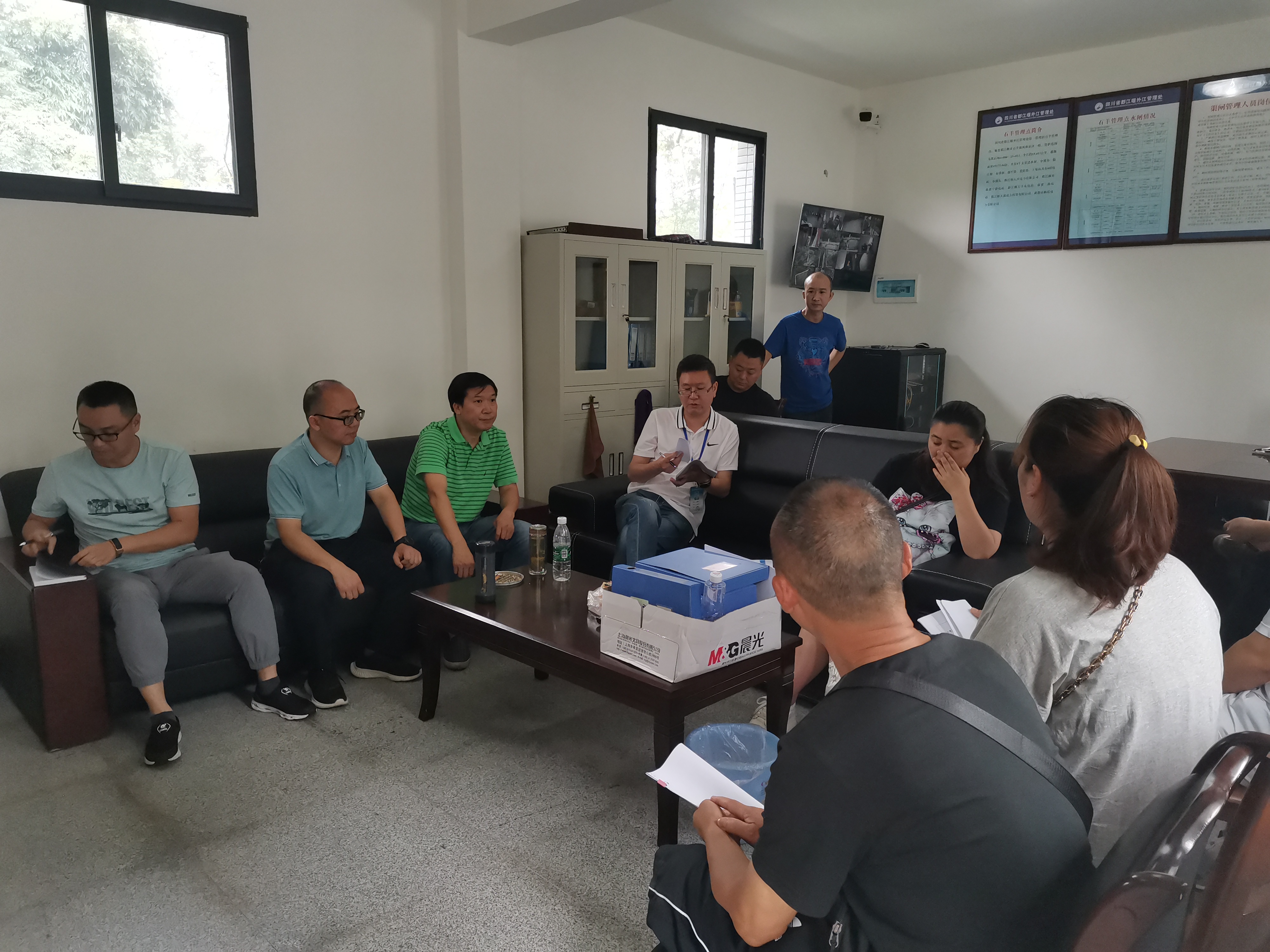 2020年7月7日,外江管理处副处长王先允带领办公室、工程科、安监科、科信室等相关部门负责同志组成基层站点升级改造审查小组,对黑石河石羊管理点升级改造工程进行完工验收。第一管理站及设计单位、施工单位一同参与。