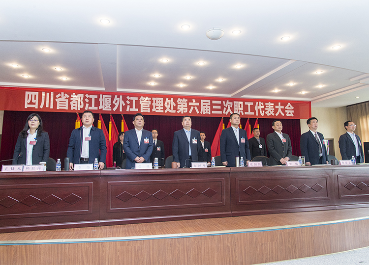 2018年3月25日,四川省都江堰外江管理处第六届三次职工代表大会在处机关六楼会议室召开,会议由工会主席师红萍主持,大会应到职工代表60人,列席代表14人,实到职工代表55人,列席代表13人,参与人数符合有关规定。经过与会代表认真讨论和审议,圆满完成了大会各项议程。