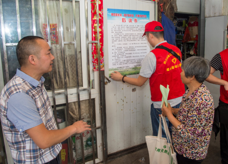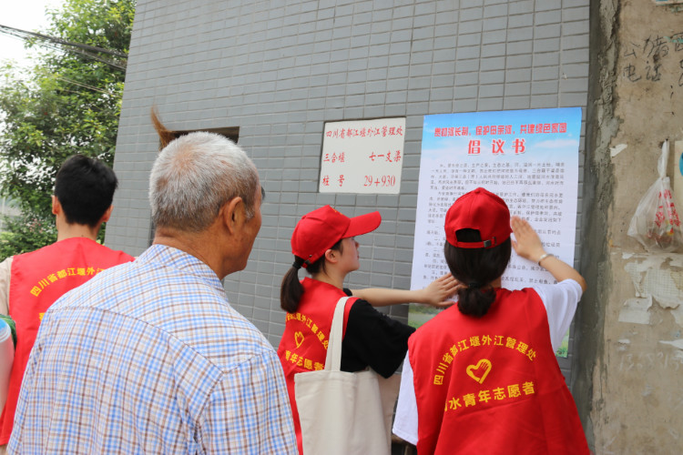 启动仪式后,外江管理处相关处领导、三县市的领导、三合堰沿途各级河长和“蜀水青年志愿者服务队”的队员们一起沿三合堰干渠对两岸的住户、商家、企业进行了入户宣传,行程40余公里,张贴、发放了1200余份倡议书。宣传过程中,志愿者们与群众面对面交流,认真倾听收集他们的意见和建议,向他们宣讲相关政策理念和保护三合堰干渠的重要性、紧迫性,切实调动起了群众参与保护治理三合堰干渠的主动性和积极性,努力凝聚全社会关爱河湖、珍惜河湖、保护河湖的社会共识。
