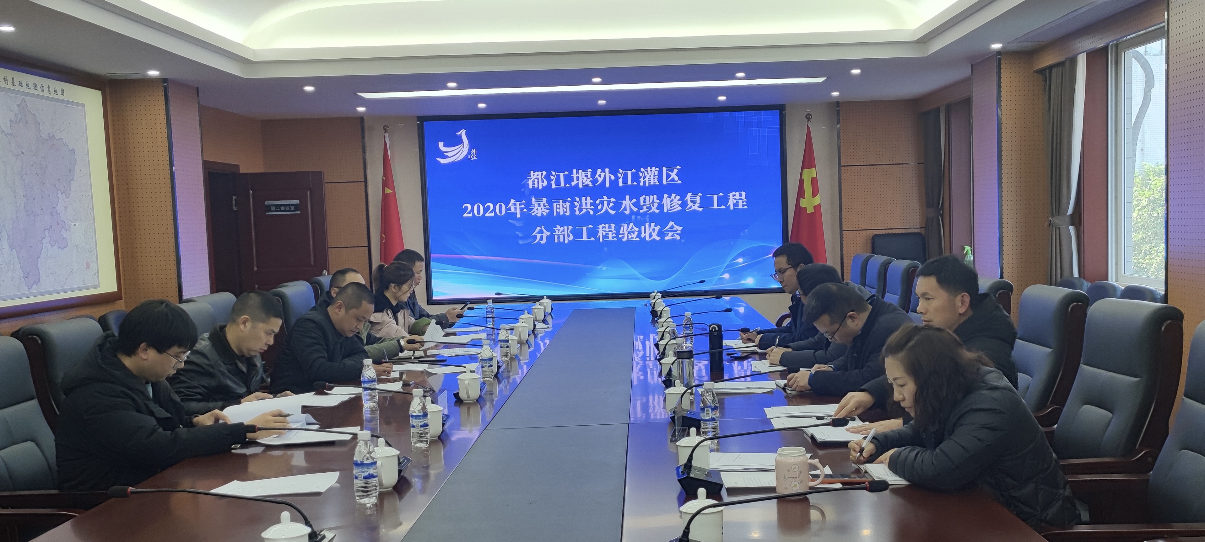 都江堰外江灌区2020年暴雨洪灾水毁修复工程于2021年4月开工,7月完成建设任务。根据施工单位的申请和《水利工程建设项目验收管理规定》、《水利水电建设工程验收规程》有关规定,2021年12月1日,外江管理处组织该工程设计、监理、施工、质量检测单位开展了分部工程验收,四川省都江堰水利发展中心代表到会指导。