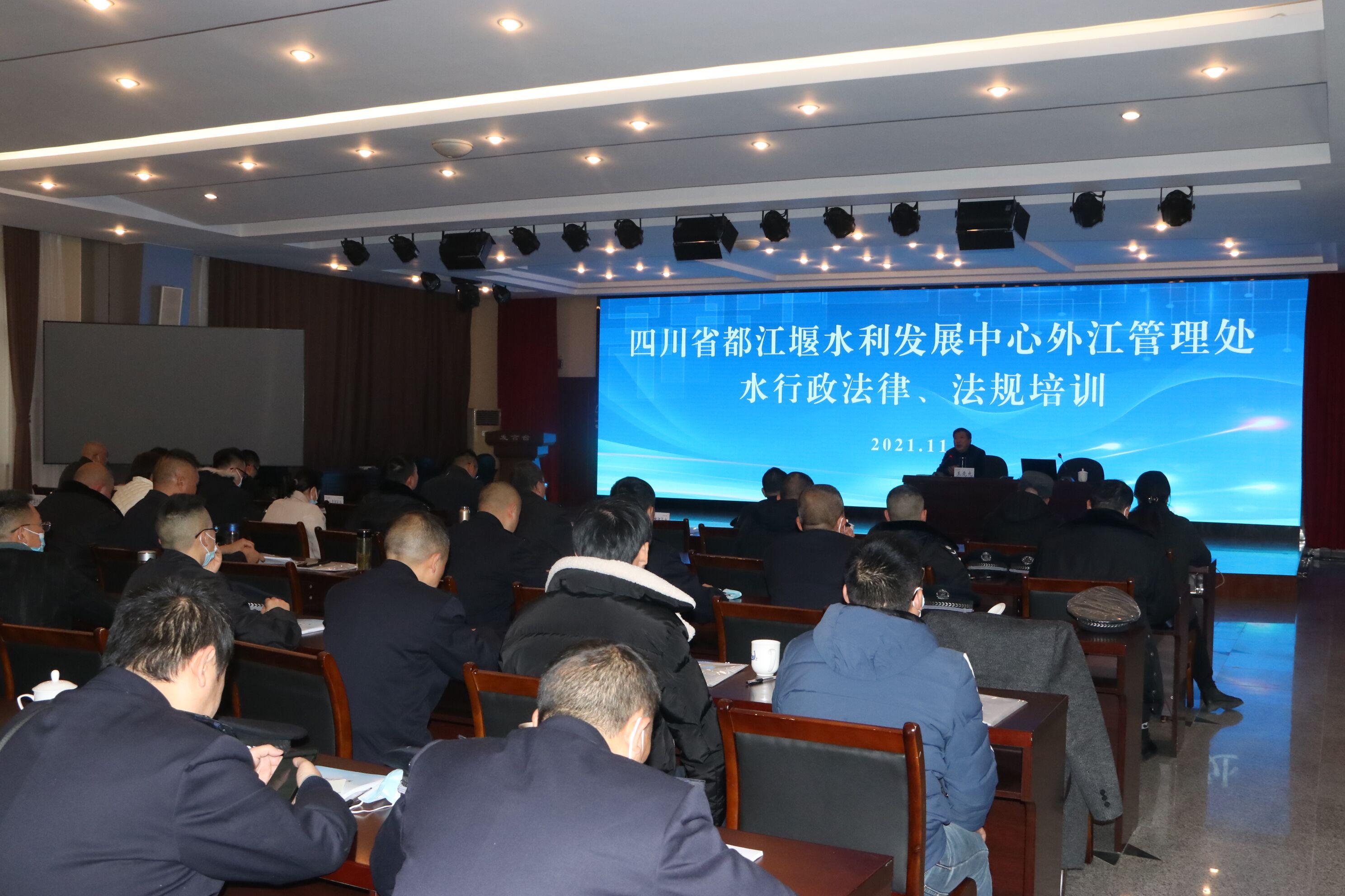 为进一步加强河道管理和水政执法队伍建设,推动水法律法规贯彻实施,全面提高外江管理处干部职工依法行政工作水平和履职能力。2021年11月30日,四川省都江堰水利发展中心外江管理处组织灌区河长、处属各管理站负责人、水政专职(兼职)执法人员就水行政法律法规做了专题培训讲座,由外江管理处副处长王先允主持。