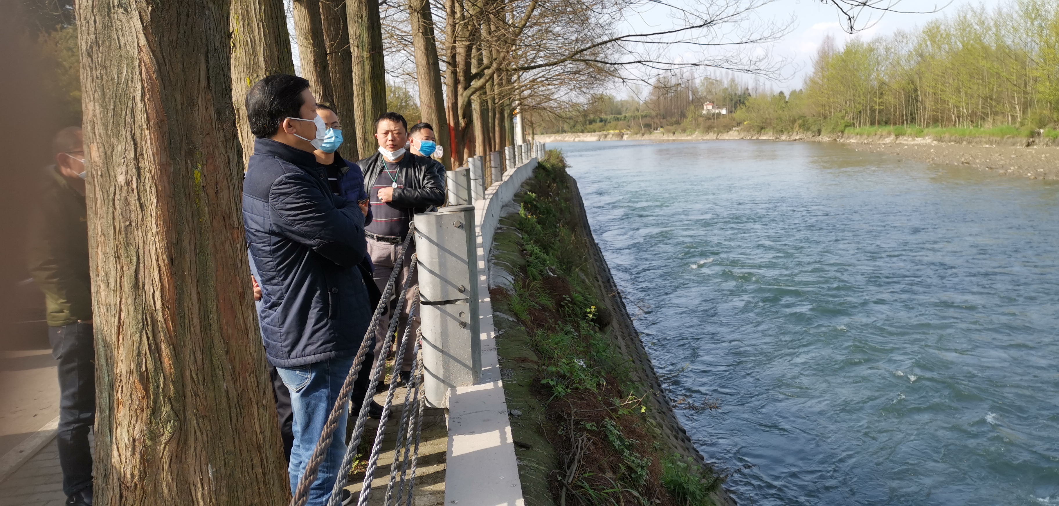 王先允一行会同地方政府、各相关电站负责人实地查勘了沙沟河百江电站段、双龙电站段、青城山镇赤城社区段、街子镇白圣村6组段,就水毁工程进行现场查勘、研究修复方案。