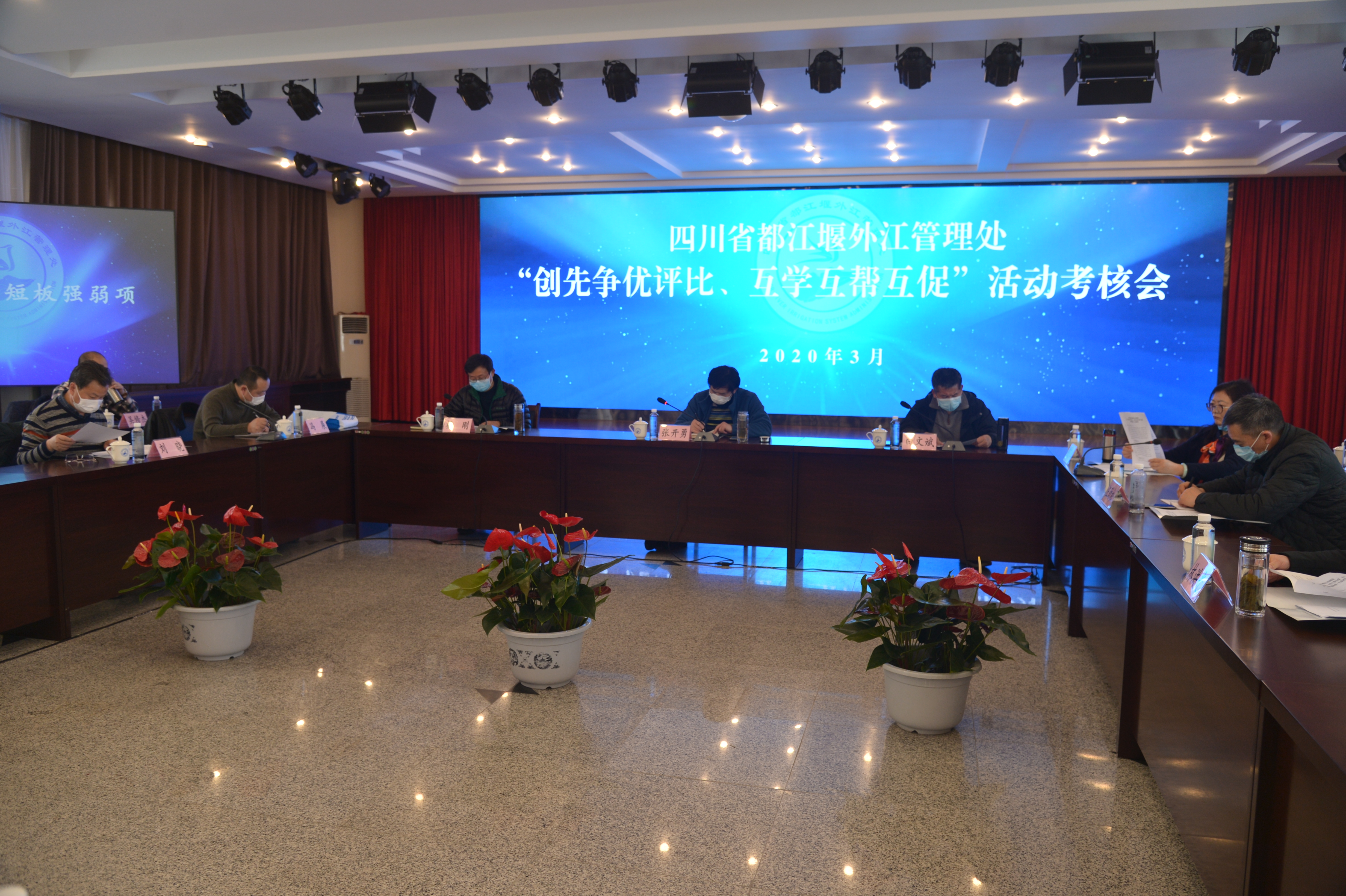 会上,考核小组听取了我处关于水闸工程管理、划界确权、安全隐患排查三个考核专题工作开展情况的汇报,并查阅了相关考核资料。张开勇副局长强调: “创先争优评比、互学互帮互促”活动是一项系统工程,是全面落实水利厅“十项要求”、提升都江堰灌区水管单位改革发展能力、推动灌区水管单位协同发展的一项重要举措,扎实抓好活动开展对推动都江堰灌区一体化发展有着十分重要的意义。当前,要坚持疫情防控和工程管理两手抓,在全面确保防疫安全的同时,继续深入推进水闸工程管理、水利工程划界确权、安全隐患排查等三个专题的工作,要切实加强工程管理,着力在健全管理制度、完善管理体制上下功夫,推进活动向纵深发展。