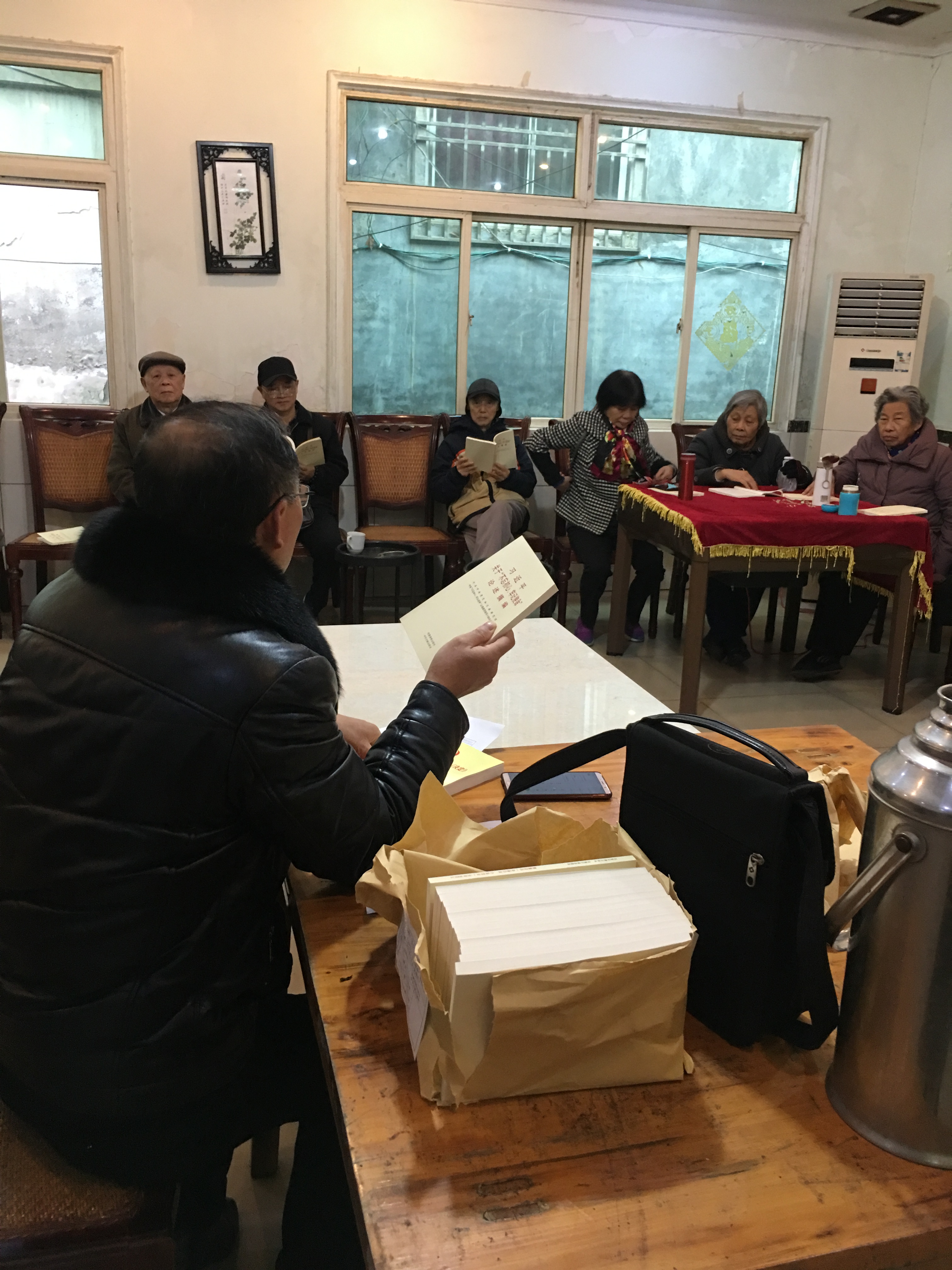11月28日上午,离退休一、二支部联合在崇州市蜀卉园召开党员大会,80多岁、90多岁高龄陈有全、舒朝铺等几十名老党员不畏寒冷参加会议。会上支部书记尹华组织学习了《中共中央关于坚持和完善中国特色社会主义制度、推进国家治理体系和治理能力现代化若干重大问题的决定》学习了关于《中共中央关于坚持和完善中国特色社会主义制度、推进国家治理体系和治理能力现代化若干重大问题的决定的说明》并结合外江管理处发展变化讲解了制度建设和治理能力现代化重大意义。会上向老党员发送了习近平关于“不忘初心、牢记使命”论述摘编,请老同志们回家自觉学习永葆革命青春、不忘初心,为单位发展献计献策。(离退科 尹华 )