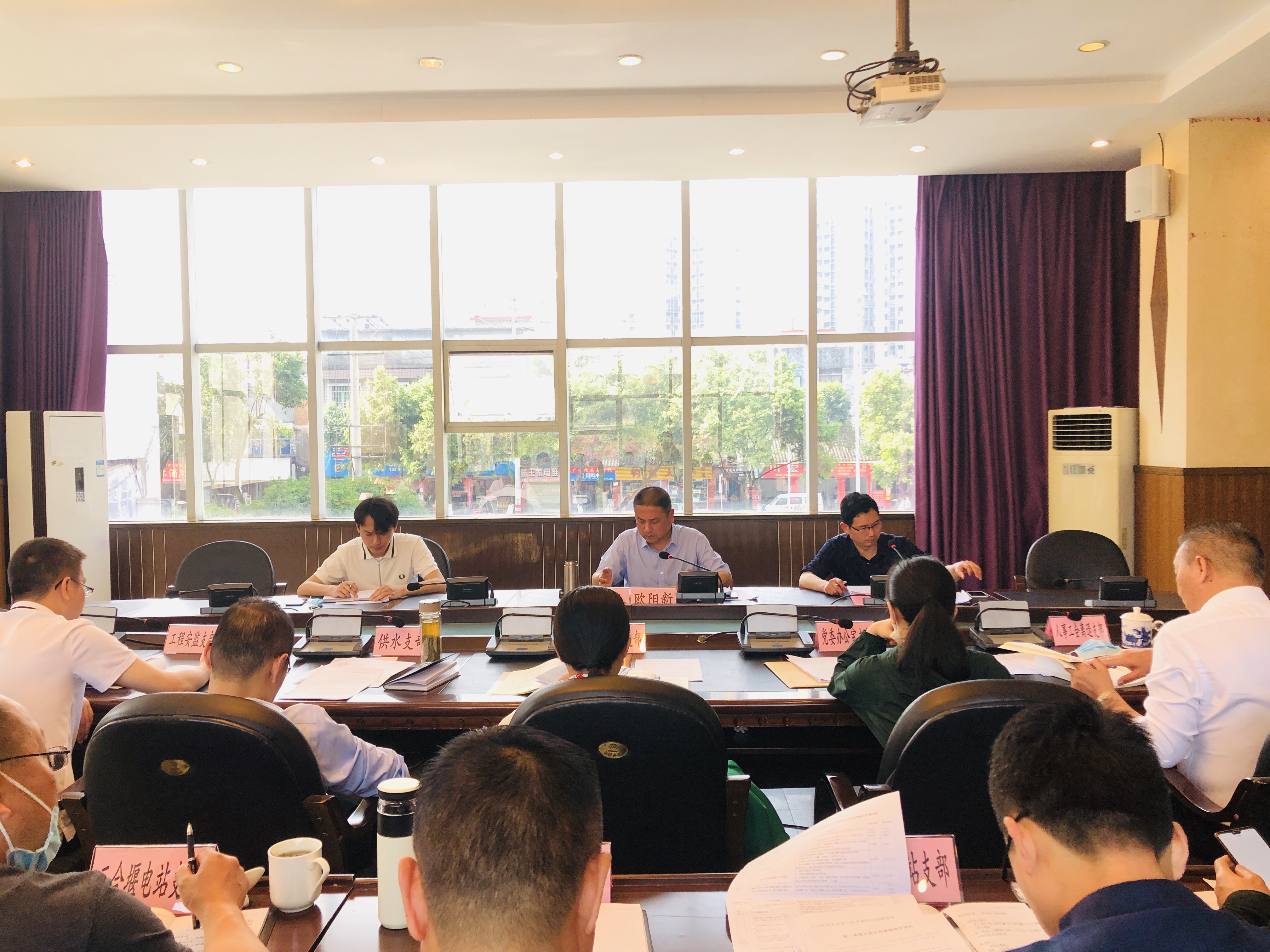 2020年4月30日,外江管理处在处机关二楼会议室召开党支部书记会议,处属各党支部书记、委员(干事)以及党办全体工作人员参加会议,会议由党委书记欧阳新主持。