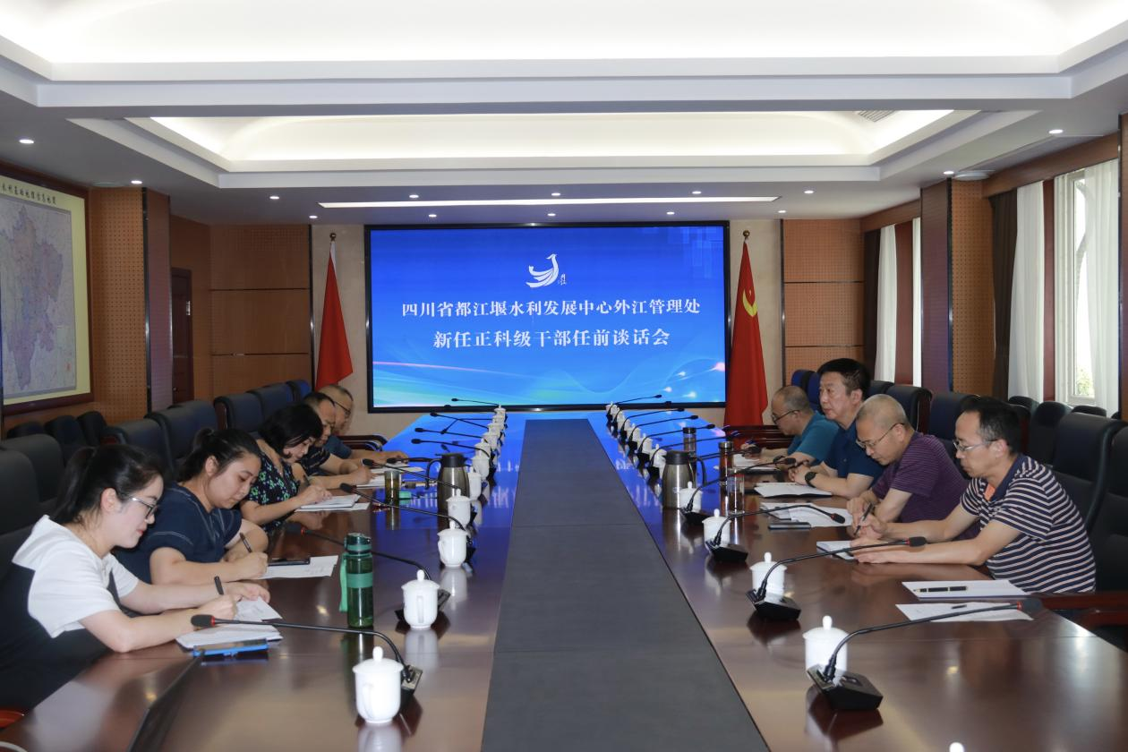 2022年8月8日,我处在四楼会议室召开了干部任前谈话会,外江管理处党委委员、副处长雷雨来对新任正科级干部提了工作要求,都发中心纪委副书记蔡显宏做了廉政集体谈话,人事科、纪检监督三室负责人以及5名新聘任正科级干部参加了会议。