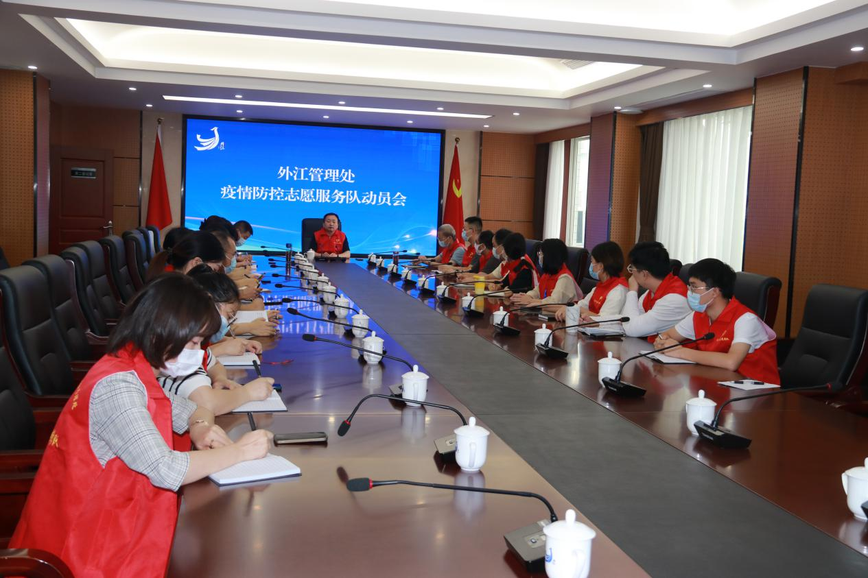 面对大疫,人皆为侠,侠之大者,守一方水土,护一方平安。面对此次来势汹汹的疫情,我处闻讯而动,积极组织动员,70名青年干部职工踊跃报名,成立了以党委书记、处长肖伟胜为队长,其他处领导为副队长的外江管理处疫情防控志愿者服务队,并于9月1日下午在处机关四楼会议室召开了动员会。