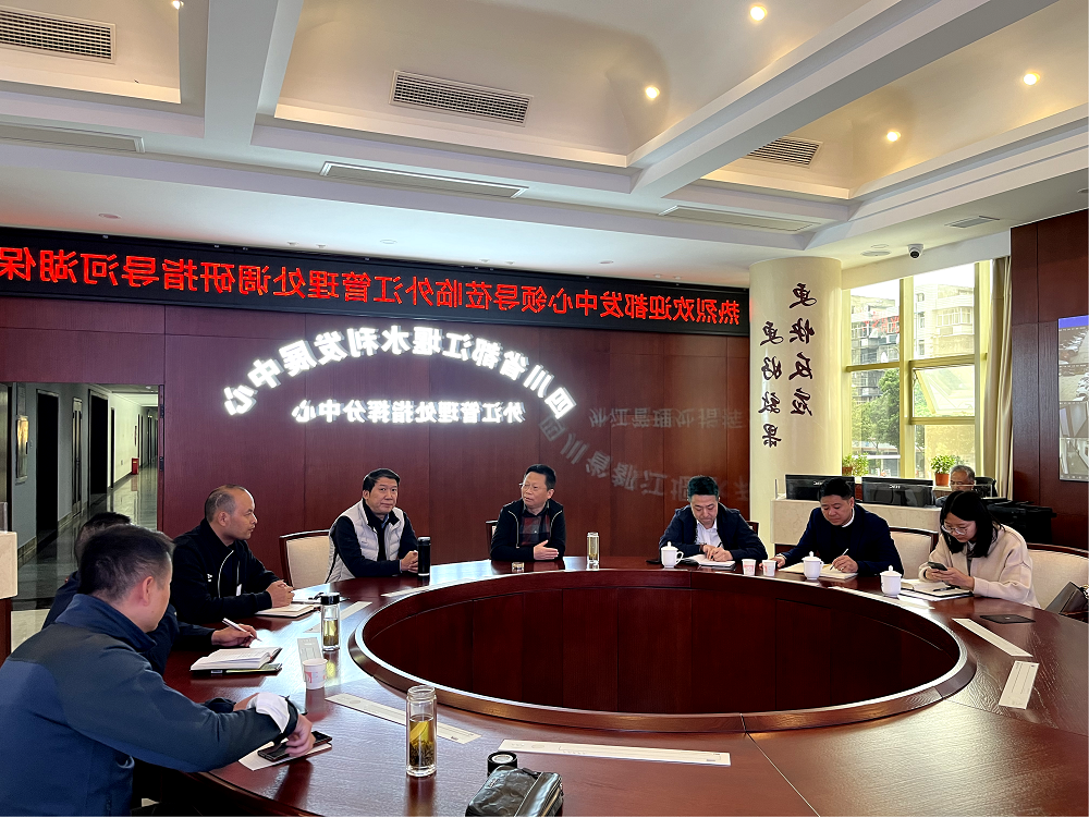 调研组首先在处机关二楼指挥中心就河湖保护工作与外江管理处、崇州市水务局召开了都江堰灌区河湖保护示范区建设调研会。会上,杜春明副主任指出要高度重视该项工作,高标准严要求做好争创活动,从源头到田间河湖保护要体现示范区的硬件、软件具体措施。