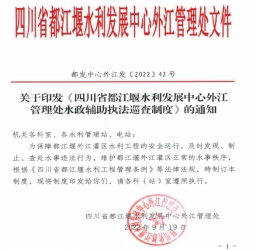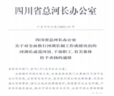 为全面推行河湖长制工作,一年来外江管理处水保工作始终坚持践行习近平生态文明思想,秉承新发展理念,在工作中推动前行,在前行中探索方向,在方向中找准目标,由于工作成绩突出,荣获2022年度四川省总河长办公室关于全面推行河湖长制工作成绩突出的表扬。