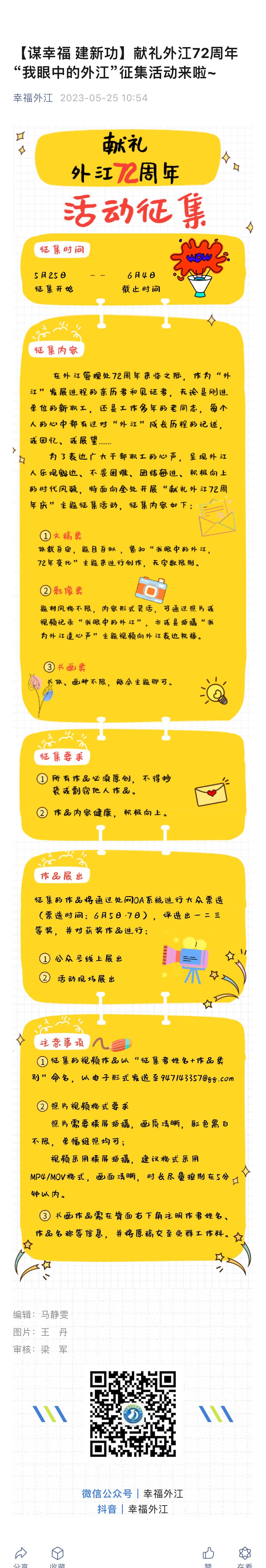 【谋幸福 建新功】献礼外江72周年 “我眼中的外江”征集活动来啦~