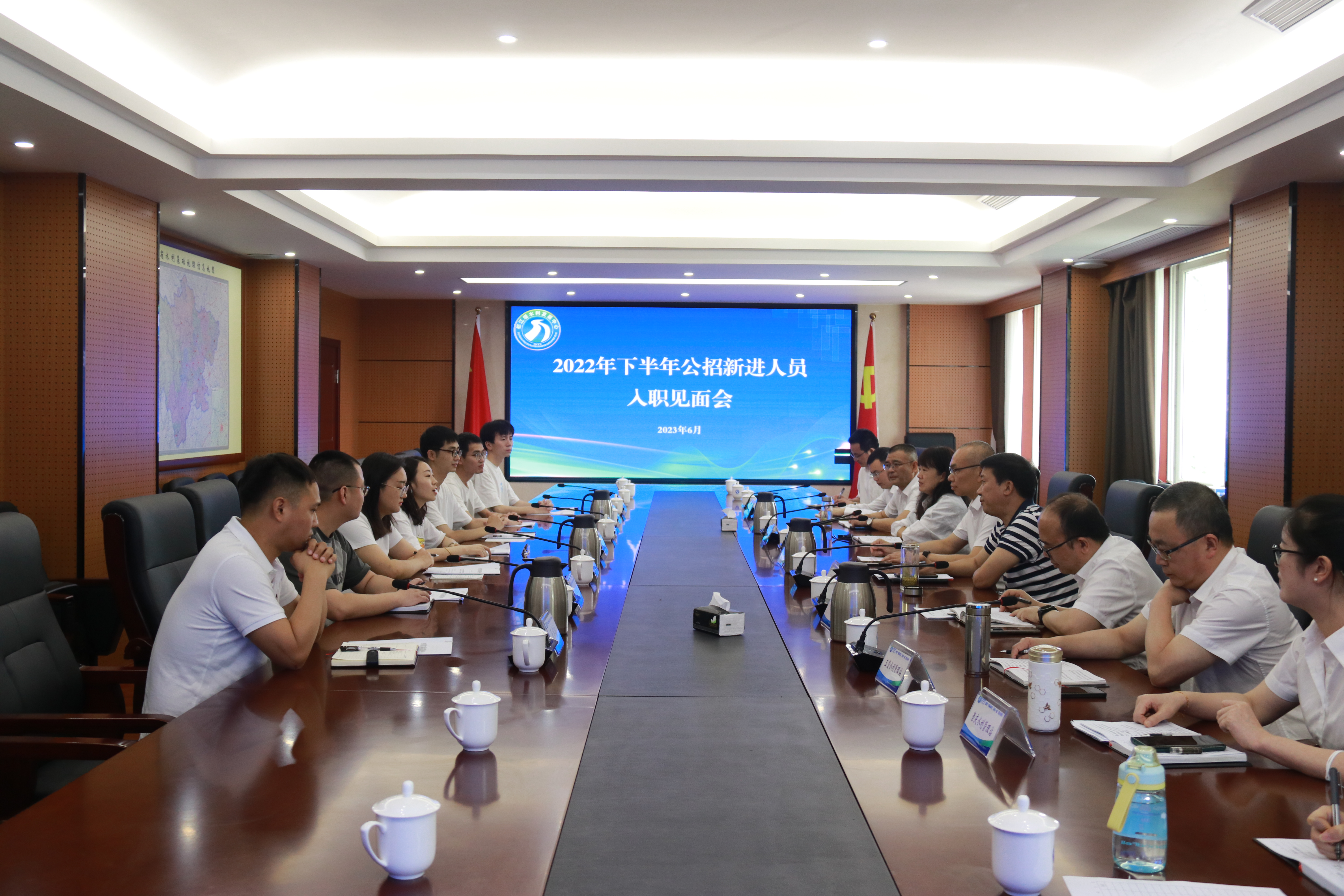 6月12日,都发中心外江管理处召开2022年下半年公招新入职人员见面会,党委书记、处长李增永,党委副书记王先允出席会议并讲话。人事科、安全监督科、办公室以及相关水利管理站负责人参加会议。会议由人事科科长郭坚主持。