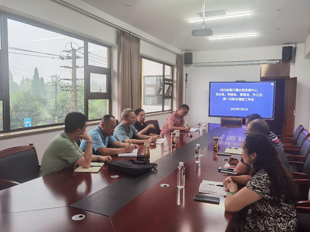 水利工作事关民生大计,通过水利事业发展,增进民生福祉提升。6月30日,都发中心办公室主任召集中心供水处、科信处、渠首处、外江处,就漏沙堰分水机制、磨儿滩水量调度机制布置安排相关工作。外江管理处按照会议安排,着眼未来,放眼大局,积极谋划,主动作为。7月3日,邀请都发中心供水处、科信处、渠首处,在渠首管理处召开了第一次联合调度会议。聚焦渠系枢纽、电站调度运行一体化管理和水量分配调度机制三大重点工作,围绕漏沙堰分水比例、磨儿滩水量调度机制及加强水库蓄水功能等具体问题展开讨论,凝聚共识,形成全面保障中心9个电站高效运行的协调联动机制。