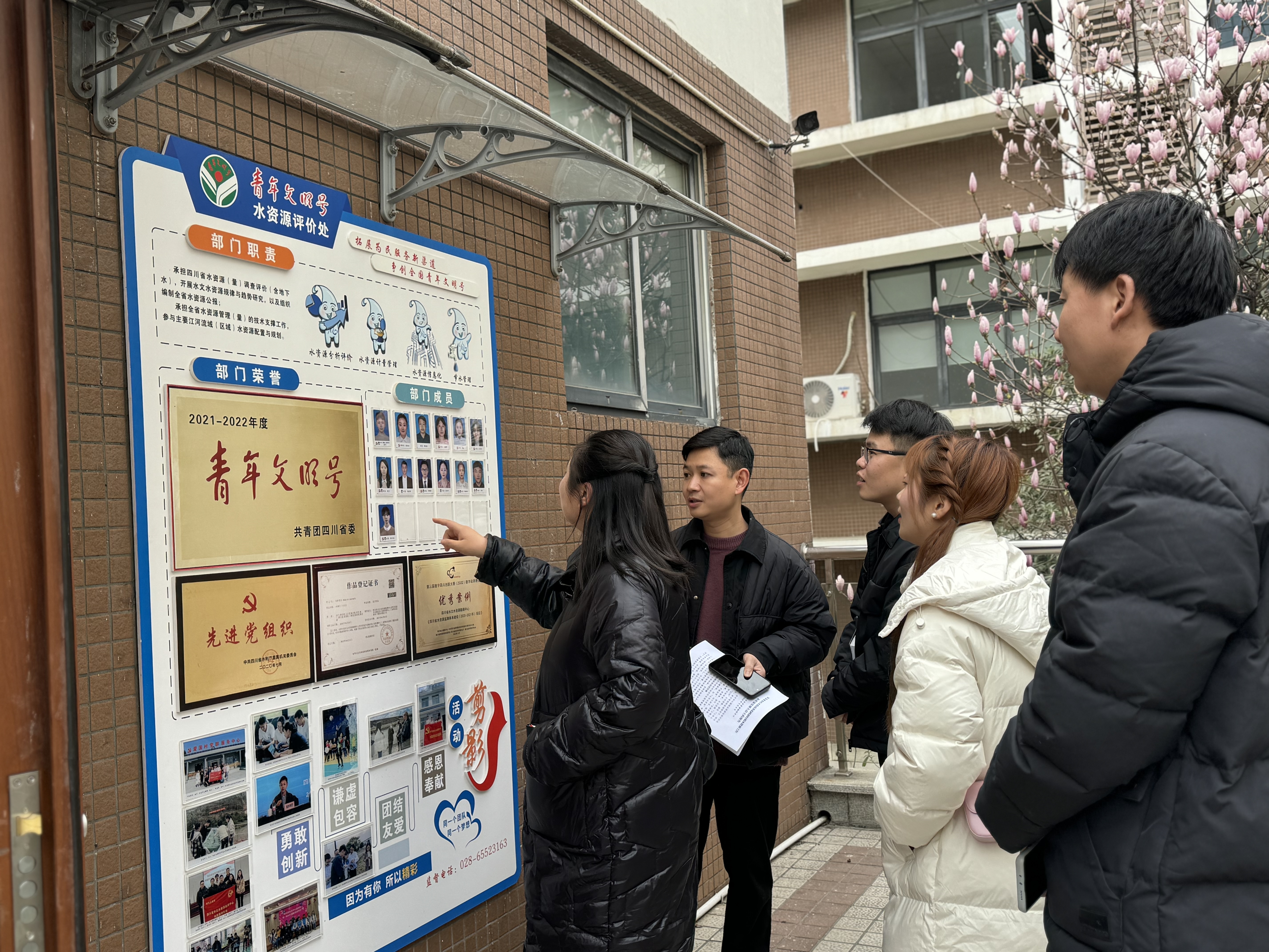 四川省都江堰水利发展中心三合堰电站经省创建青年文明号活动组委会审核公示,正式成为2023-2024年度四川省青年文明号创建集体。为进一步深化“青年文明号”创建工作,促进创建活动持续、规范、有效地开展,提高青年文明号创建质量,充分发挥青年文明号集体在灌区发展新质生产力中的争先创优、示范带动作用,3月5日,外江管理处团委组织创建集体和相关人员,走进四川省水文水资源勘测中心水资源评价处“四川省青年文明号”实地观摩学习。