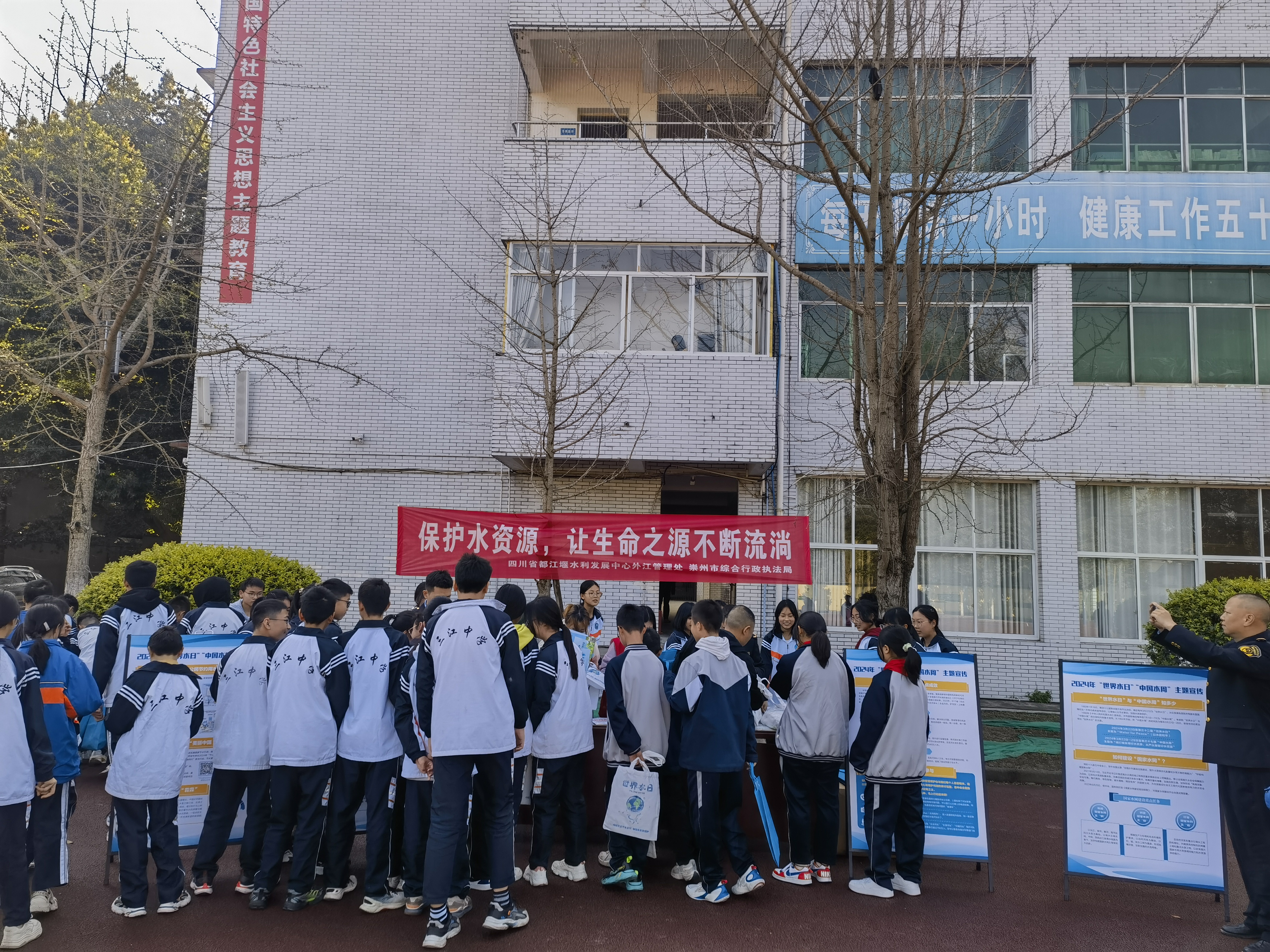 为了加强节水、护水教育,提高在校学生的水忧患意识,培养爱水、惜水、节水和护水好习惯,切实保护好水资源,3月25日,外江管理处联合崇州市综合行政执法局在崇州市崇庆中学和三江中学共同开展外江灌区2024年“世界水日”“中国水周”系列宣传进校园活动。