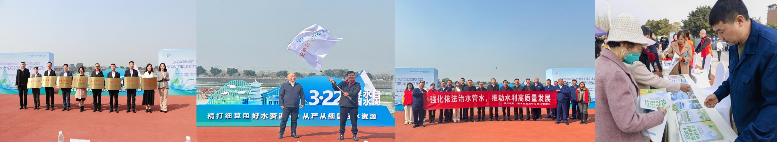 3月22日,“世界水日”当天,“中国水周”第一天,外江管理处联合四川水利职业技术学院、成都市河道监管事务中心、崇州市水务局、天府粮仓河长联盟等单位在崇州市太阳岛广场开展宣传活动。都发中心党委委员、副主任吴鉴出席活动并为节水型学校、节水型小区授牌,我处作为“天府粮仓河长联盟”2024年理事单位,现场与崇州市水务局完成了盟旗交接。活动现场还通过展板宣传、面对面讲解节水知识、发放节水宣传品等多种方式,深入宣传水法、水环境知识以及生活小窍门等,获得了市民的一致好评。