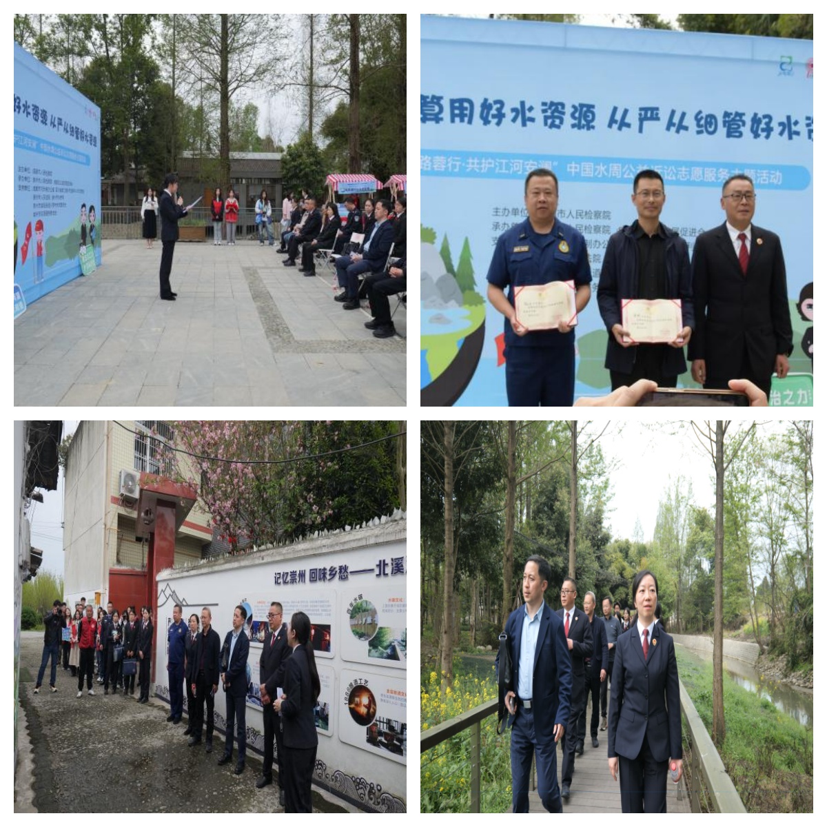 外江管理处与成都检察院、成都市水务局、崇州市检察院、崇州市水务局、等单位在崇州市小罗村广场开展“中国水周公益诉讼志愿服务主题活动”,崇州市检察院为我处相关人员颁发了特邀检察官助理聘书,随后,多方共同前往小罗村进行了联合巡河,重点检查了河道“四乱”整治情况,并沿途开展水法宣传活动,进一步保障了灌区及周边水安全,也提高了灌区群众对水资源的保护意识。