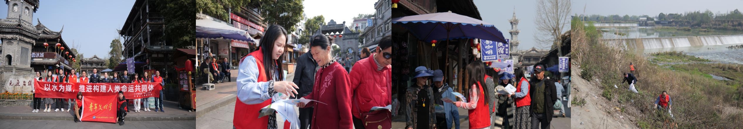 外江管理处联合崇州市综合行政执法局、元通镇团委,在元通古镇景区设置宣传点位,通过发放宣传资料、讲解“世界水日”“中国水周”知识,向过往游客及当地居民普及水知识,引导大家积极主动参与到节约用水、保护水资源行动中来。同时,对景区河渠周围的垃圾进行了清理,以实际行动全力保护水资源。