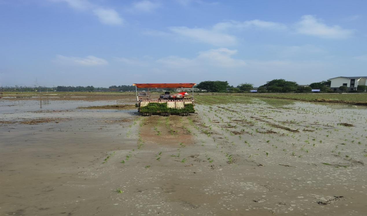 一旁,在前几天刚收割完油菜的大田里,无人机进行施肥,智能插秧机进行插秧,随着机器缓缓前行,秧苗自动一行行整齐地插入稻田里。一幅幅抢收、抢种的农忙画卷,次第铺展,抢抓夏收有利时机,成熟一片、抢收一片,确保成熟小麦颗粒归仓。