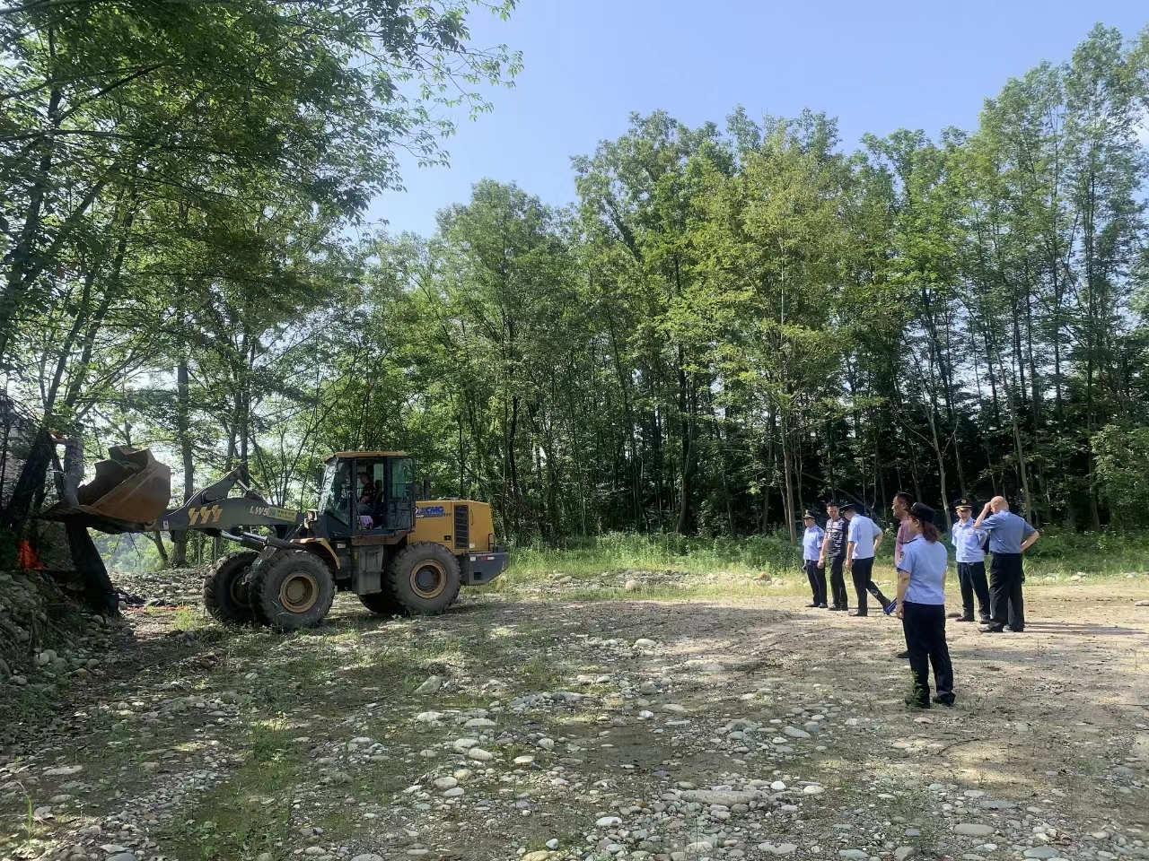 为加强外江灌区河湖管理保护,5月31日,外江管理处联合崇州市检察院、崇州市城市管理和综合行政执法局、元通镇人民政府、元通镇派出所依法拆除了元通镇景汇村沙沟河河道管护范围内的围网及进入河道主要道路上的违法建筑大门,并在河堤边安装了警示牌,在道路两旁的厂房围墙上张贴了警示标语,共同维护了外江灌区崇州市域良好的水事秩序,推动了生态环境持续向好。