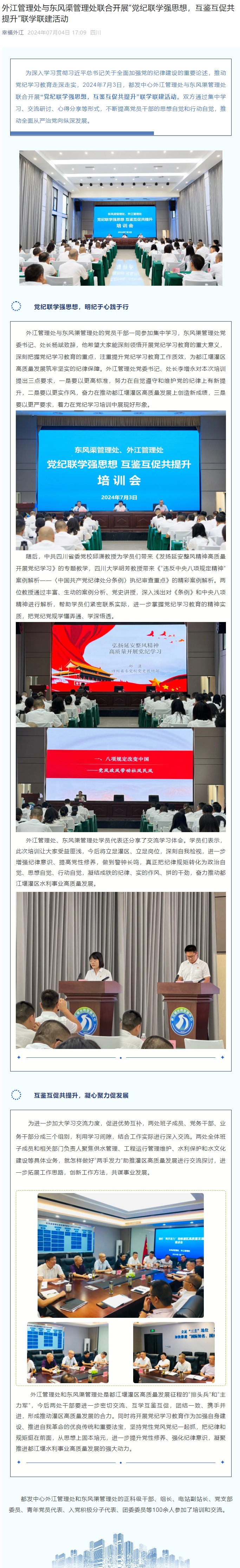 外江管理处与东风渠管理处联合开展“党纪联学强思想,互鉴互促共提升”联学联建活动