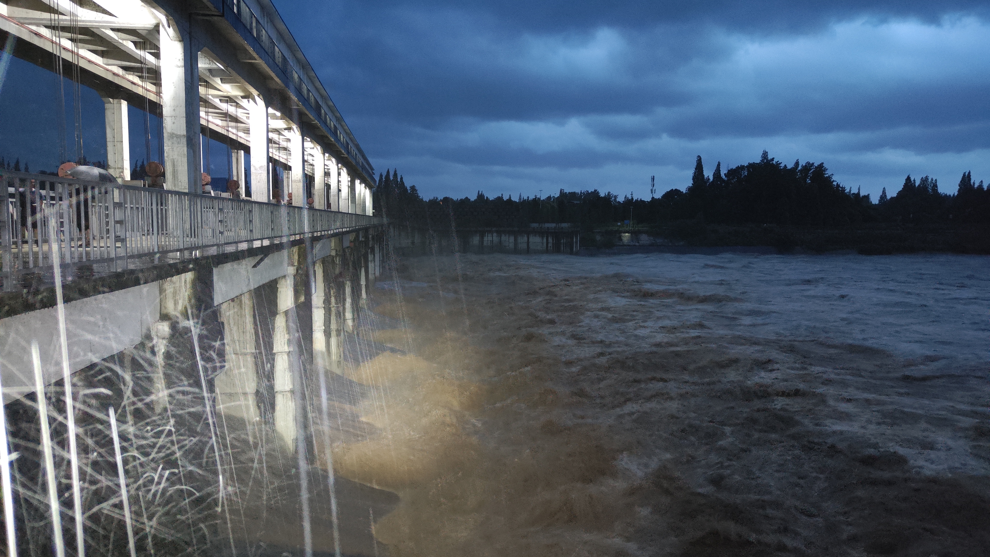 七月以来,外江灌区连续多日出现降雨天气,给区域内防汛安全带来了严峻挑。7月23日,都江堰水利发展中心防汛抗旱指挥部发布风险提示,随后,灌区多个区县发布暴雨预警,崇庆水利管理站迅速响应,进入警戒状态,站部及下属各管理站所有值班人员高度戒备,通宵值守,对即将到来的强降雨严阵以待。7月24日凌晨2:20分,站部值班人员接到乌木堰枢纽值班人员电话报告,乌木堰及上游山区受暴雨影响,河流水位正迅速上涨;2:40分三合堰枢纽值班人员报告闸前水位正迅速上涨,将继续密切监视水情;3:17分,三合堰枢纽继续报告河水持续上涨,已将7孔闸门全部开闸泄洪。在各枢纽点位进行紧急处置的同时,站部人员已赶赴重要点位开展现场协调工作。
