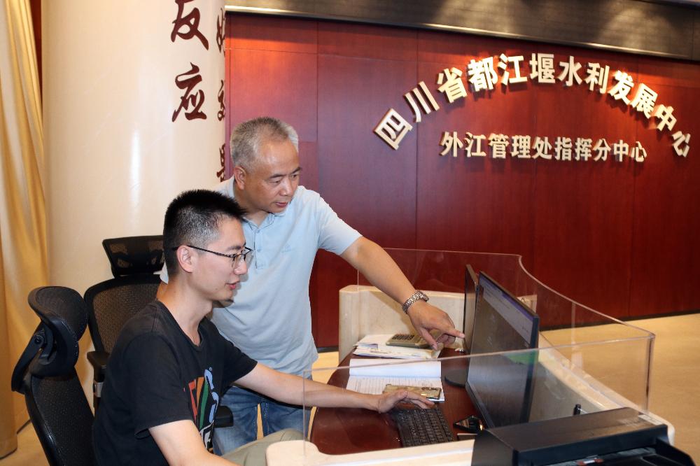 7月23日,正好是李建忠当值,21时35分,他接到都发中心防汛指挥中心来电,得知紫坪铺水库将在22时将加大下泄流量,预泄腾库应对汛情。此时的窗外已经开始下雨,雨滴不时敲打着机关2楼值班室的玻璃,发出清脆的声响。对于汛期值班的水利人而言,这雨声就像征战的鼓点,不断提醒着他们肩负的责任。