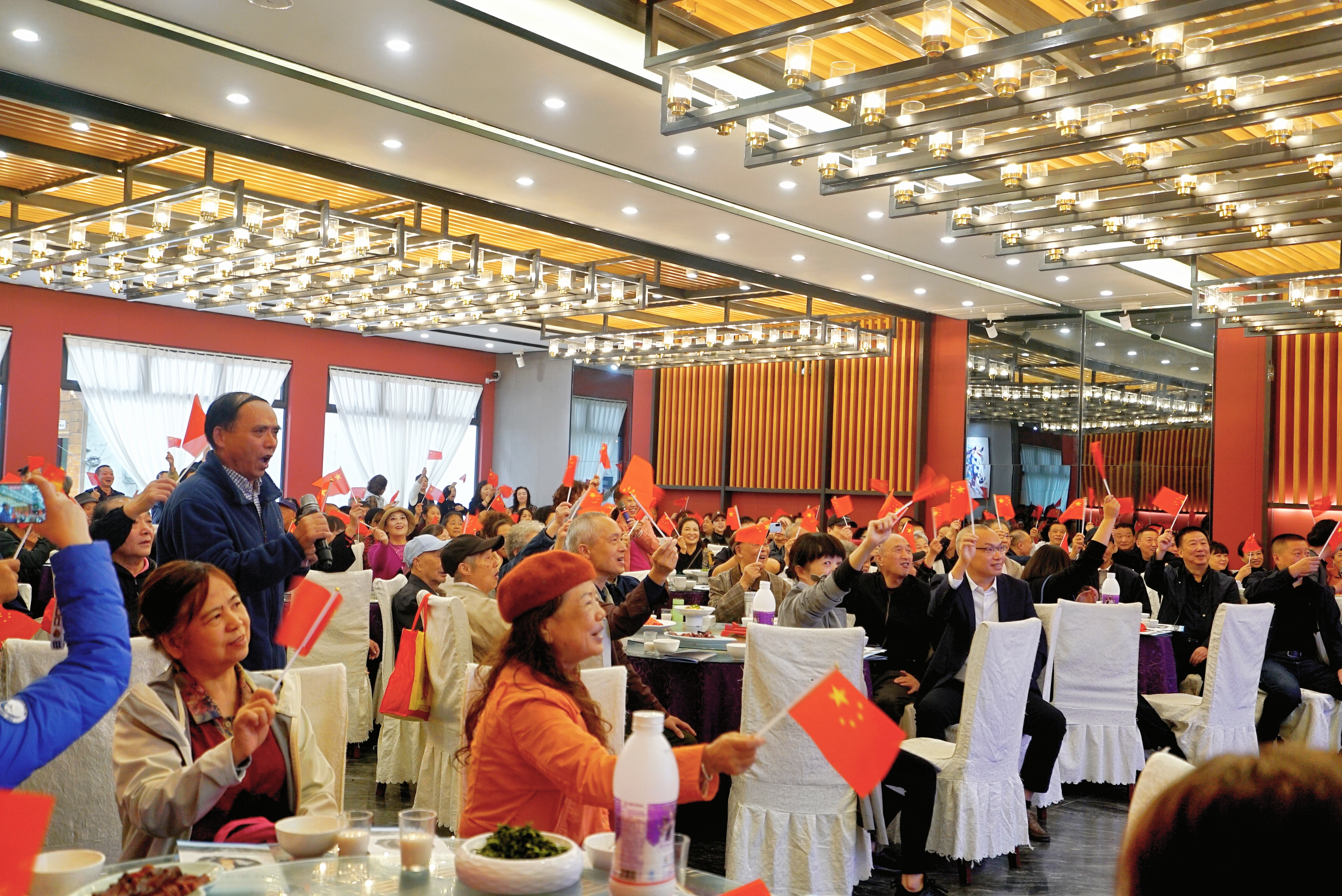 活动以全体退休职工齐声合唱《我爱你中国》拉开序幕,大家手持小国旗,用嘹亮的歌声表达了对祖国深沉的热爱之情,现场气氛热烈而感人。