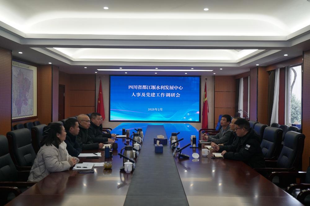 2025年2月13日,都发中心党委副书记李彦富率队前往外江管理处,针对基层党组织建设和干部人事管理工作开展专题调研。本次调研通过实地走访、座谈交流等方式,深入探讨新时代水利系统党建与干部队伍建设创新路径,为都江堰灌区现代化建设注入强劲动能。调研组着重围绕“四强”党支部建设标准体系、评价考核激励机制、年轻干部梯队建设等关键问题展开深入探讨。座谈会上,外江管理处党委书记李增永汇报了处党委在党建工作中的创新举措与实际成效,双方就进一步完善评比考核结果运用机制、强化年轻干部培养、优化岗位聘用和绩效考核等重难点问题展开热烈讨论,共同探寻解决办法,力求推动党建和人事工作迈向新高度。