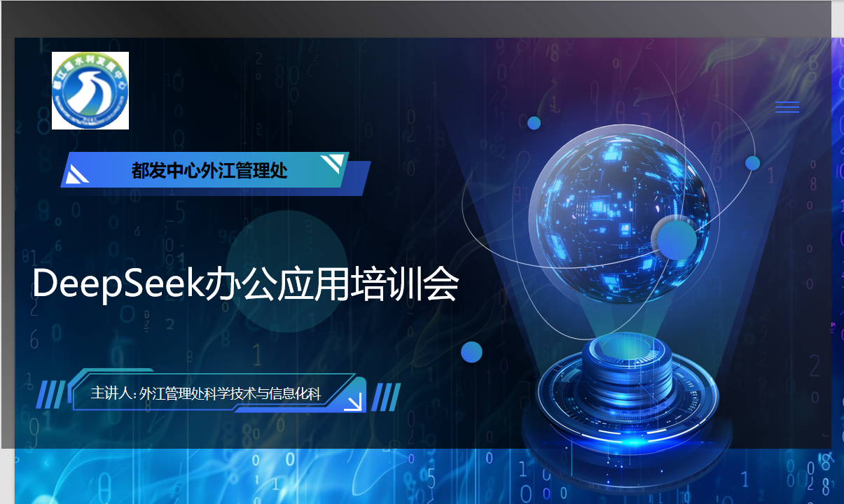为深入贯彻落实水利科技工作会议精神,加快推进人工智能等前沿科技在水利领域的应用,外江管理处于2月17日组织召开了Deepseek办公应用宣传培训会。会议旨在提升干部职工对AI技术的认知和应用能力,以科技赋能水利高质量发展。