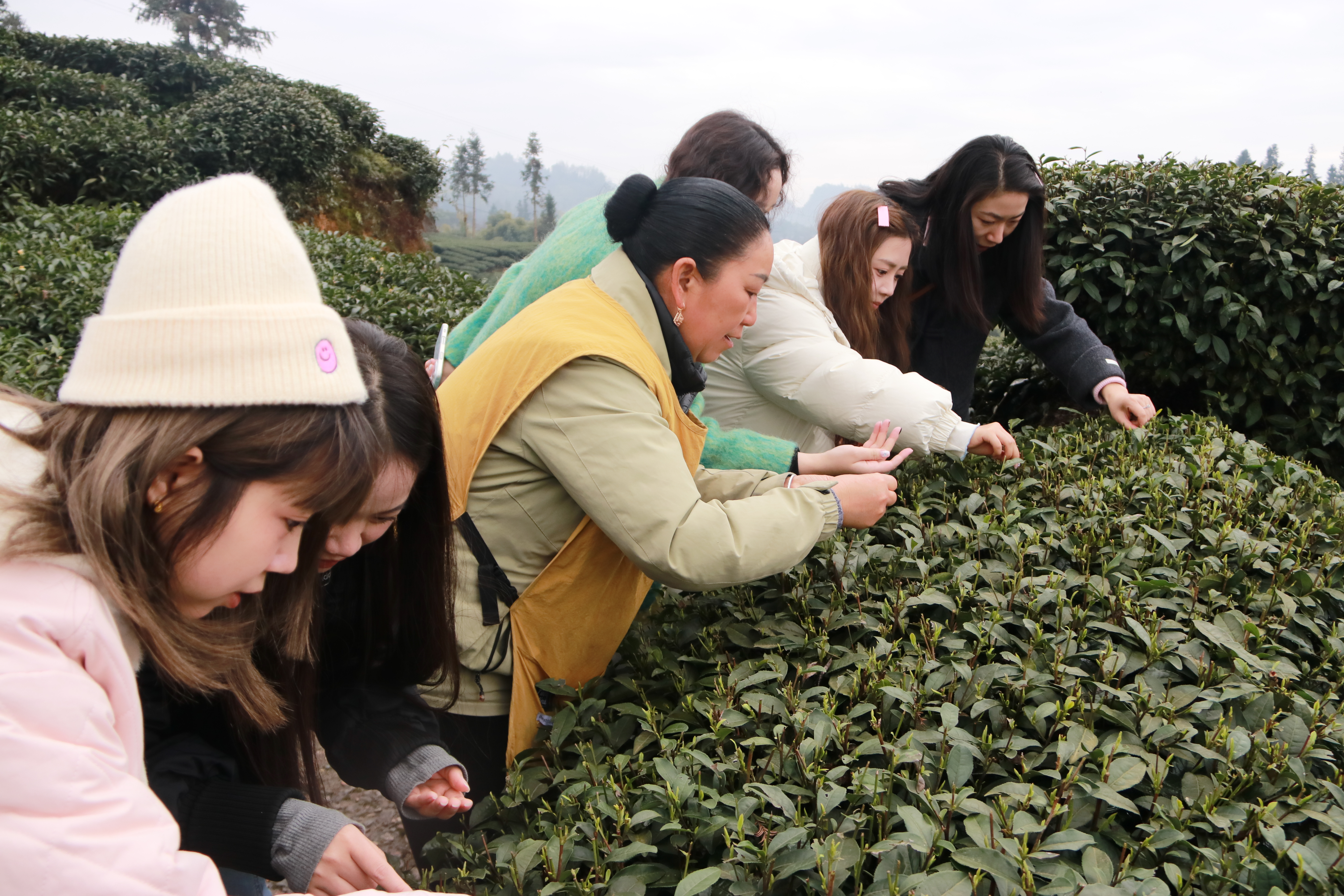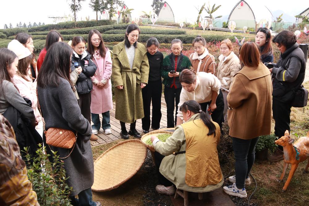 茶香入鼻绿丝笼,小桥流水过闲庭。女职工们背着竹篓,穿梭在云雾缭绕的青翠茶垄间,开启了一场采撷春意的生态之旅。在茶农耐心地指导下,她们专注地学习“一芽两叶” 的采摘技法,每一次手指轻捻,摘下嫩绿的茶芽,都是在与大自然进行一次亲密互动。采摘结束后,女职工们分组体验杀青、揉捻、烘干等传统制茶工序,见证茶叶从鲜嫩走向醇厚的蜕变,恰似生态系统中物质与能量的转换,感受传统工艺与生态理念的深度融合,也让这份春日的美好,成为她们生态守护精神的生动注脚,诠释着人与自然和谐共生的美好愿景。