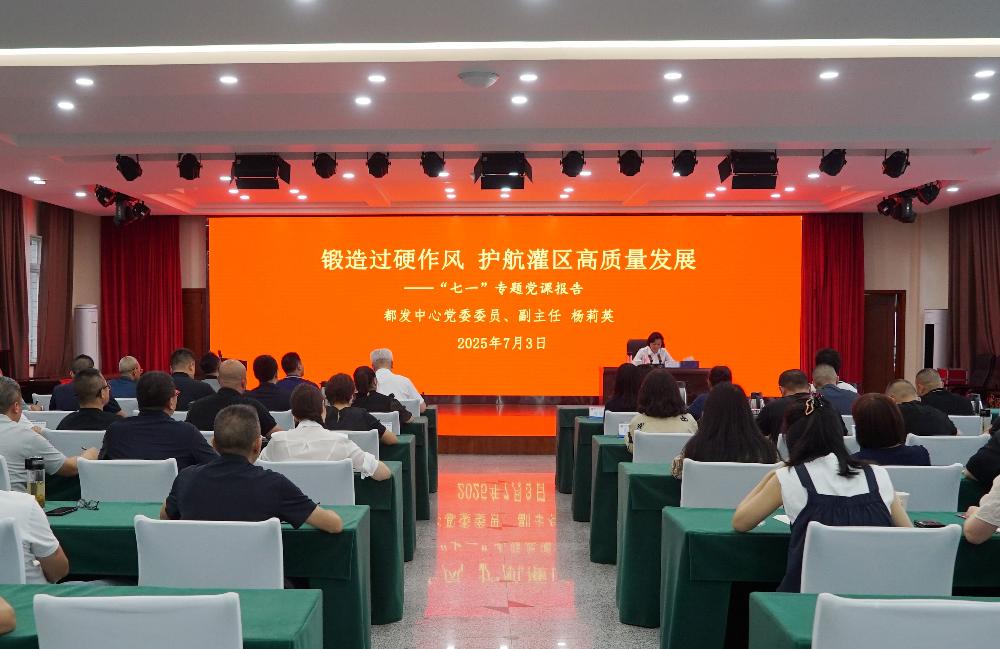 都发中心党群处、人事处,外江管理处党委委员、各党支部负责人、机关全体党员参加专题党课。