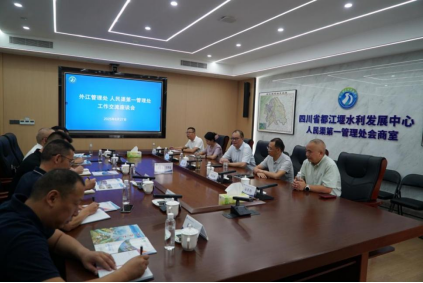 在水利厅召开都江堰灌区高质量发展座谈会后,外江管理处迅速响应,第一时间召开专题会议传达学习会议精神,研究部署落实举措。为切实将会议精神转化为推动工作的实际成效,积极借鉴兄弟单位先进经验,决定开展“学先进、促提升”现场交流学习活动。8月27日,外江管理处党委书记、处长李增永率队赴人民渠第一管理处开展学习交流,人民渠第一管理处党委书记、处长周宗剑一行全程陪同调研。